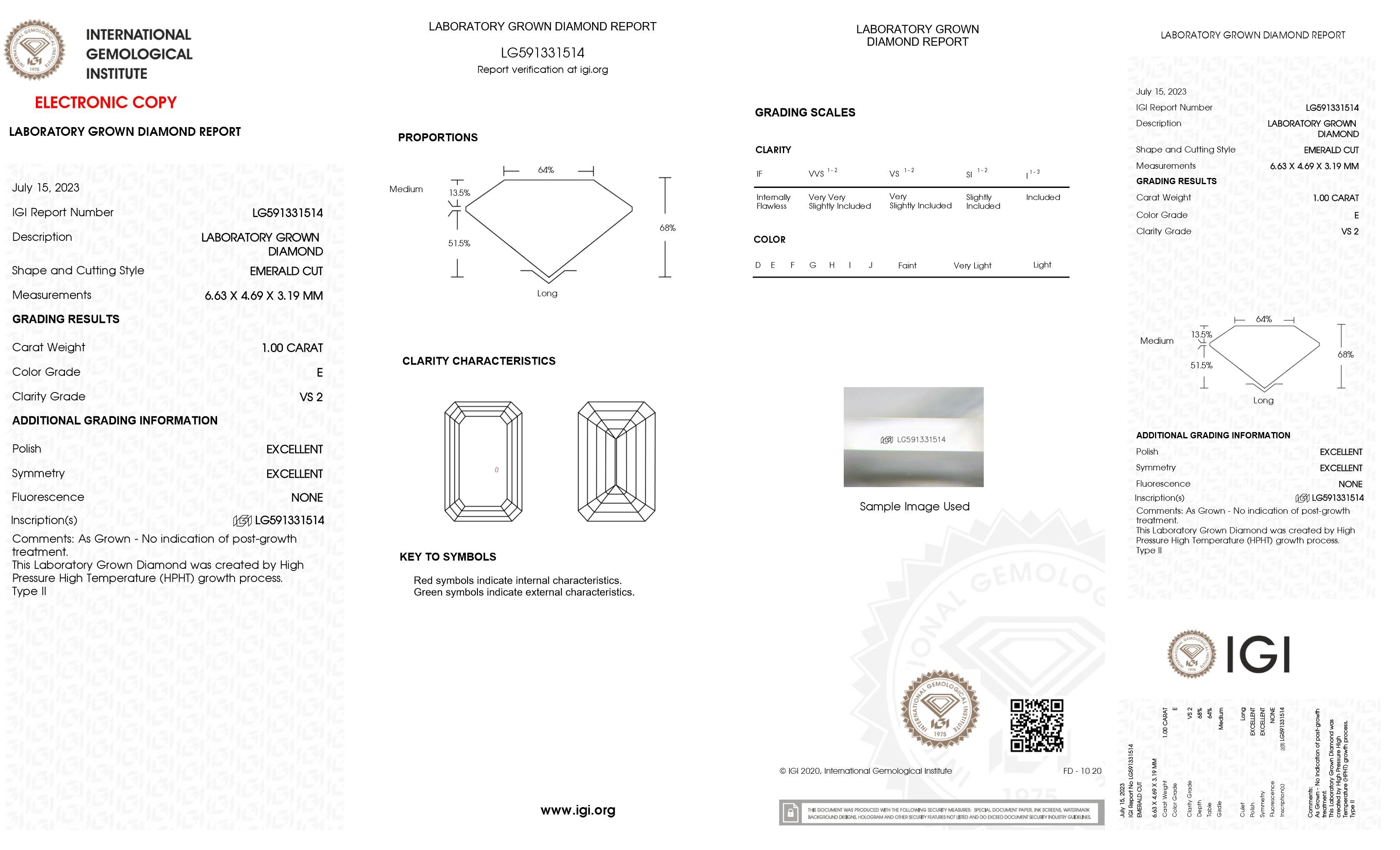 This piece includes paperwork from Universal Gemological Laboratory (UGL) and 2 from International Gemological Institute (IGI).