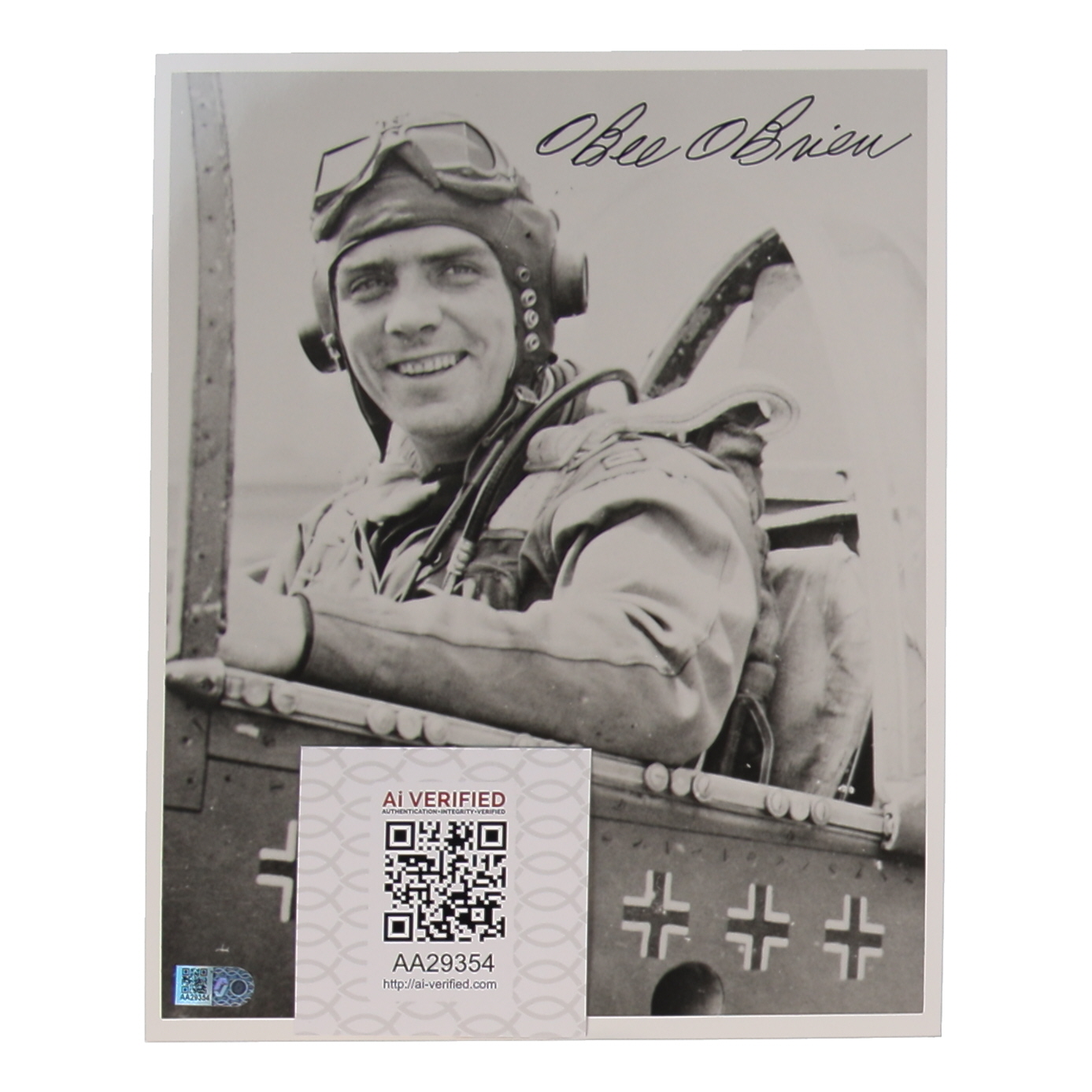 This signed photograph is a rare and valuable artifact from WWII aviation history, capturing the legacy of **William ""Obee"" O'Brien**. With its **AI-Verified Certificate of Authenticity** and matching authenticity sticker, it stands as a testament to his remarkable service and accomplishments during World War II.