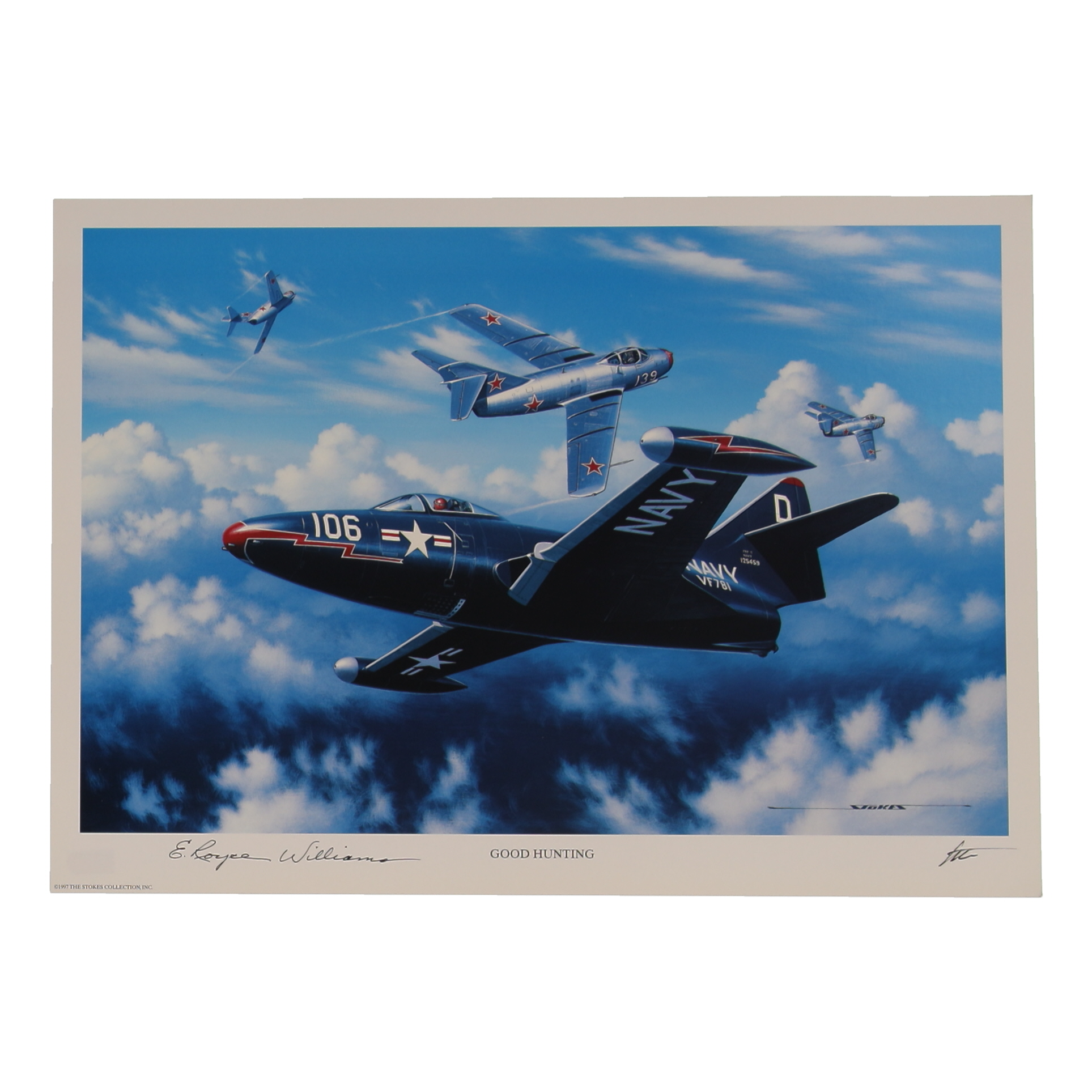 The hand-signed signature of Royce Williams, a distinguished Korean War pilot, adds an extra layer of authenticity and prestige to this lithograph, making it a prized addition to any aviation collection.