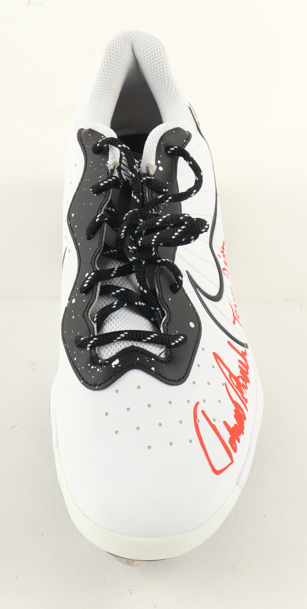 Nike baseball cleat, size 10.5. Hand-signed by Johnny Bench (Cincinnati Reds, HOF) and Tony Perez (Cincinnati Reds, HOF).