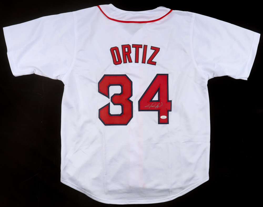 Custom jersey with everything sewn on, size XL. Hand-signed by David Ortiz (HOF).