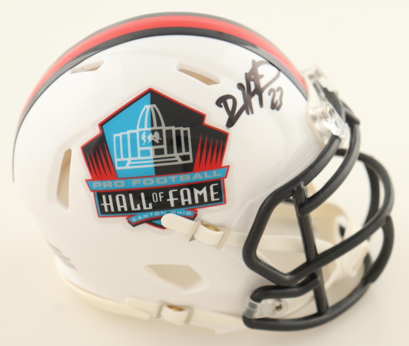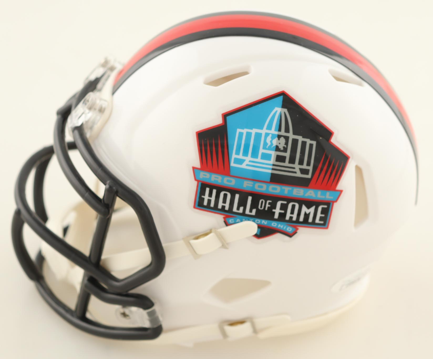 Riddell Hall of Fame logo speed mini helmet. Hand-signed by Devin Hester (Chicago Bears, HOF).