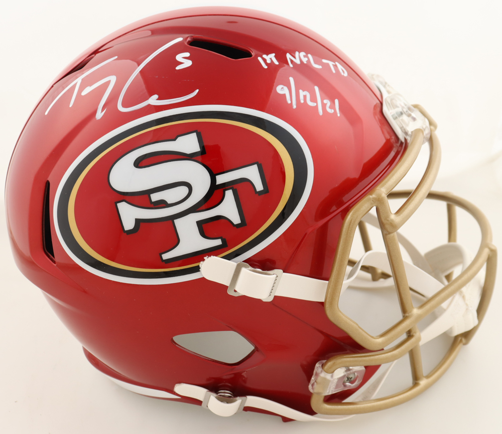 Trey Lance Signed 49ers Full-Size Authentic On-Field Flash Alternate Speed Helmet Inscribed "1st NFL TD 9/12/21" (Beckett)