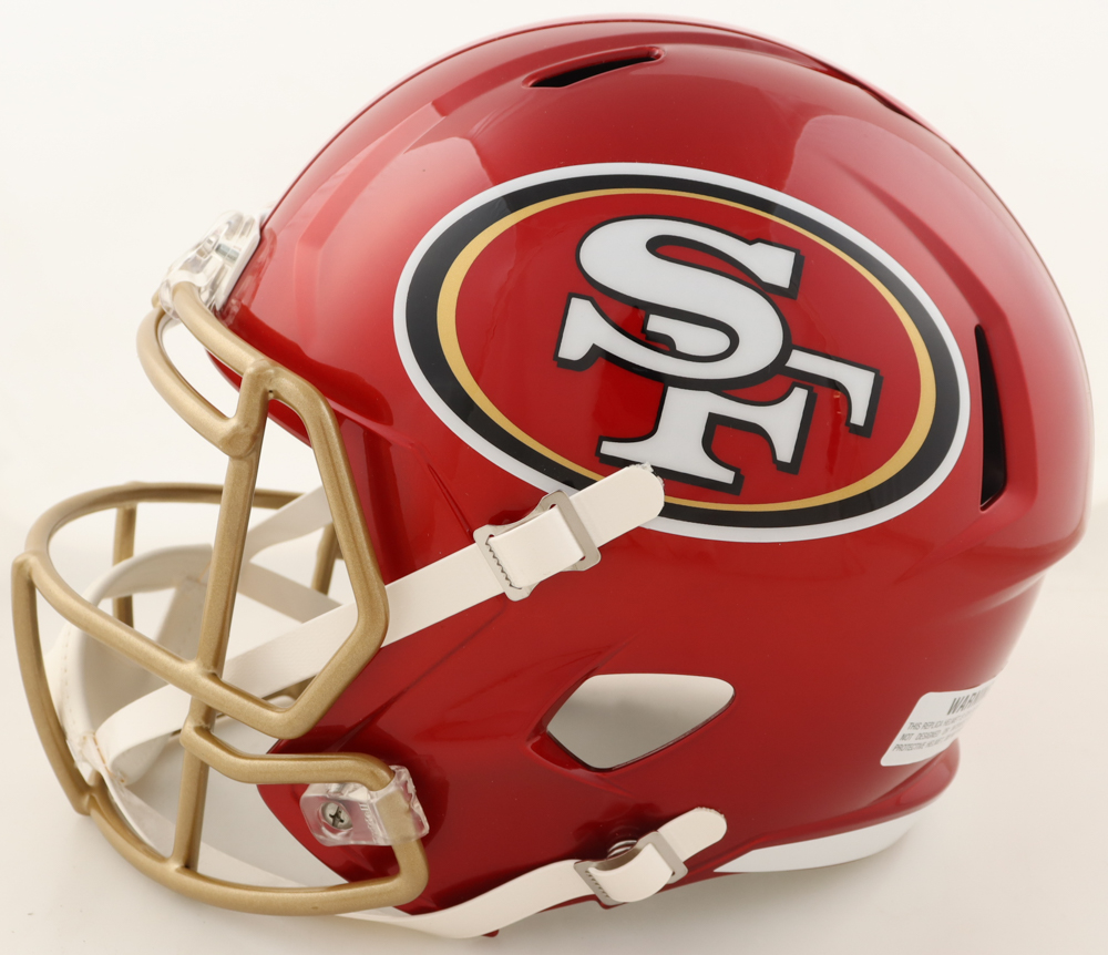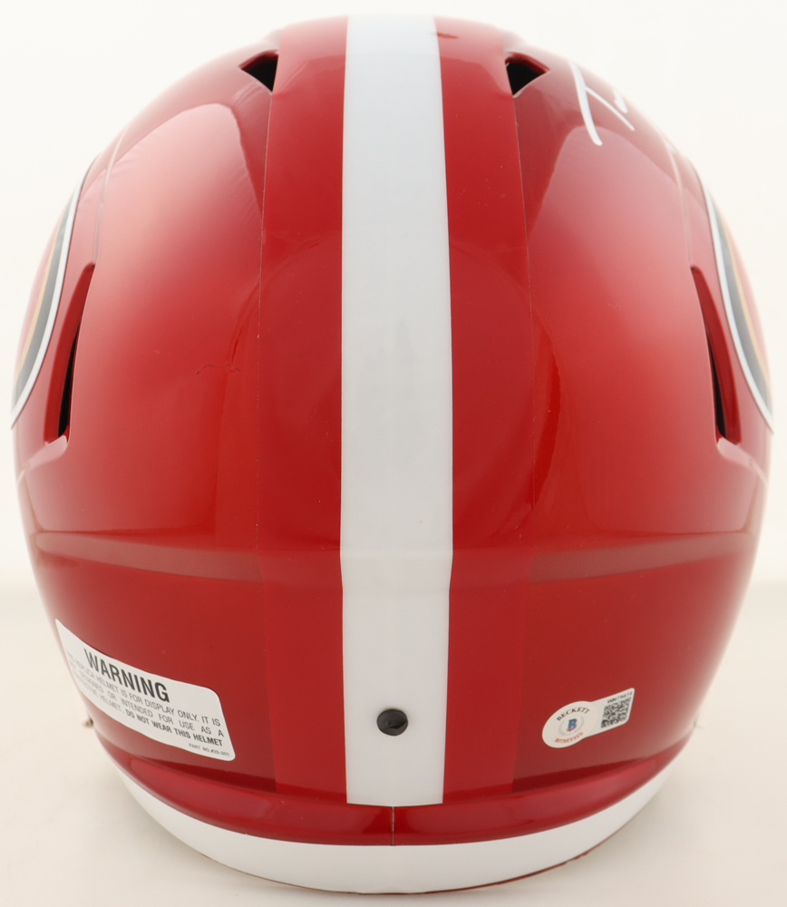 Riddell San Francisco 49ers full-size authentic on-field Flash Alternate Speed Helmet has been hand-signed and inscribed by Trey Lance.