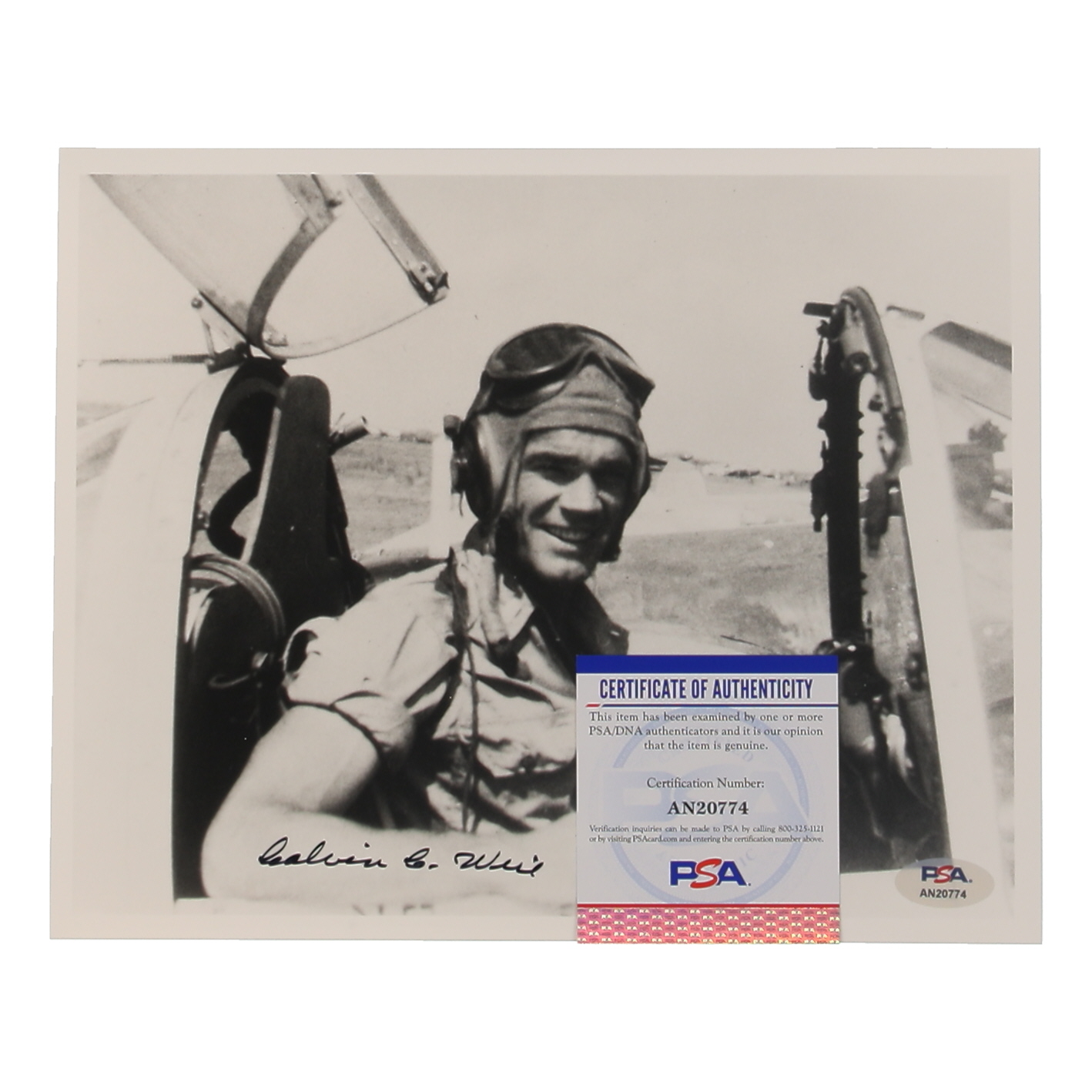 **Hand-Signed 8x10 Photograph by WWII 475th Fighter Group American Fighter Ace Calvin Wire**
