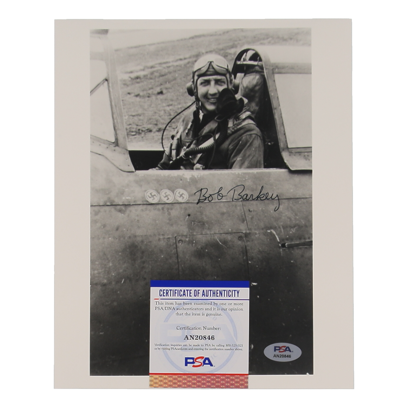Don't let this rare opportunity pass you by. Bid now and make this exceptional signed 8x10 photograph of WWII ace Robert Barkey the centerpiece of your collection. With PSA/DNA authentication, you can bid with absolute confidence, knowing that authenticity is guaranteed. Seize this chance to honor the legacy of a true American hero. Place your bid today and let this extraordinary piece of WWII history become a cherished part of your collection! """