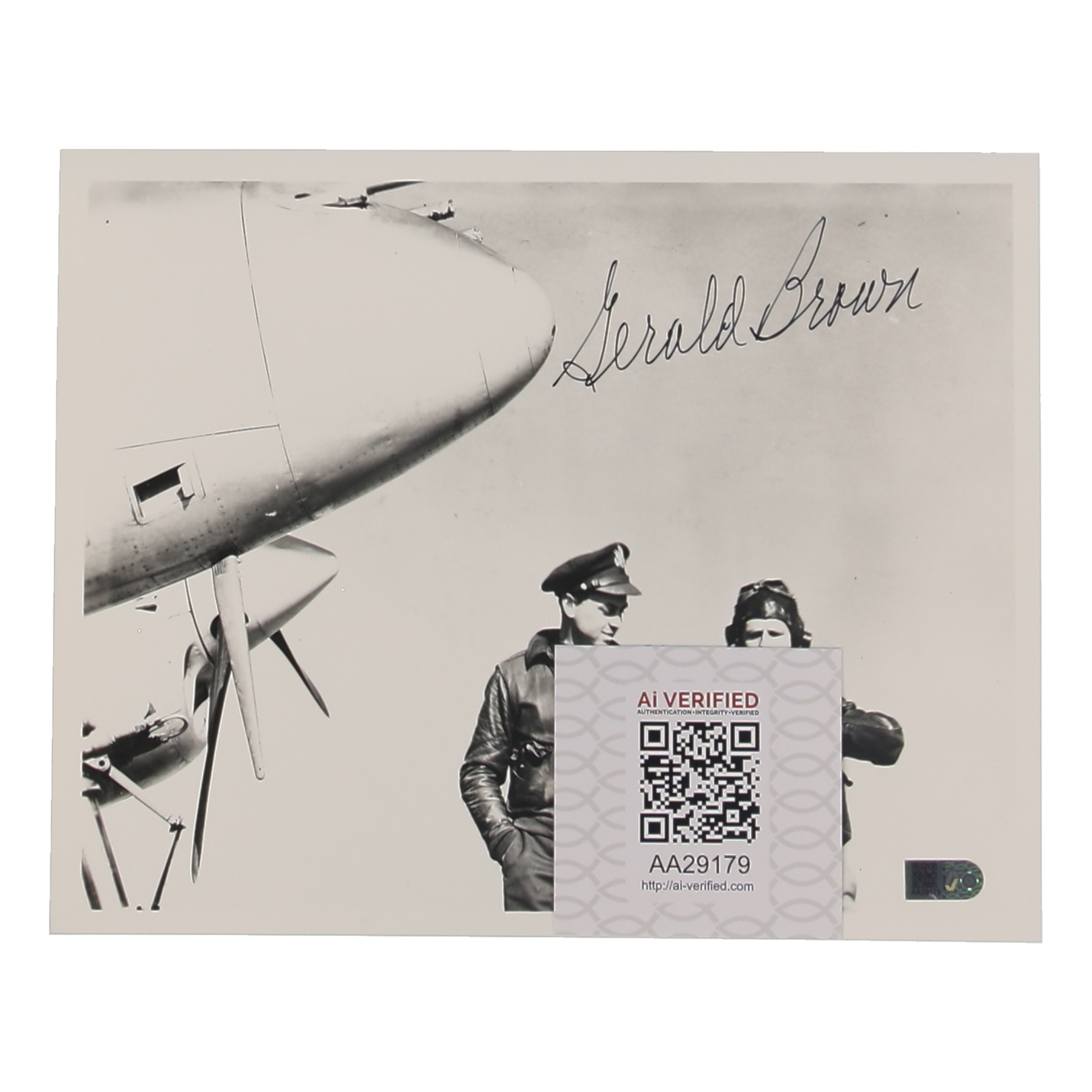 Available for auction is a highly collectible 8x10 photograph, hand-signed by **Gerald Brown**, a distinguished American Fighter Ace and pilot with the 55th Fighter Group during World War II. Brown achieved 5 aerial victories, earning his place among the elite group of pilots whose skill and bravery were instrumental in securing Allied air superiority in Europe. This photograph, bearing Brown's authentic signature, is a significant piece of history that commemorates his remarkable service.