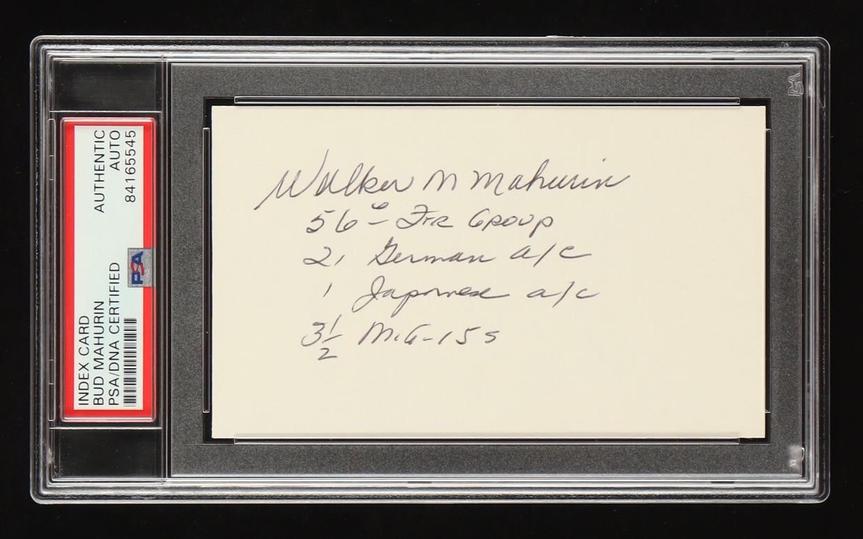 Presented is a rare and distinguished **hand-signed cut signature** of **Colonel Walker ""Bud"" Mahurin**, one of the most celebrated American Fighter Aces of World War II. Executed in **pencil**, this historically significant autograph is **encapsulated by PSA/DNA**, ensuring its authenticity and preservation for generations to come.