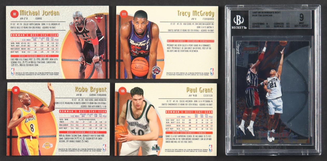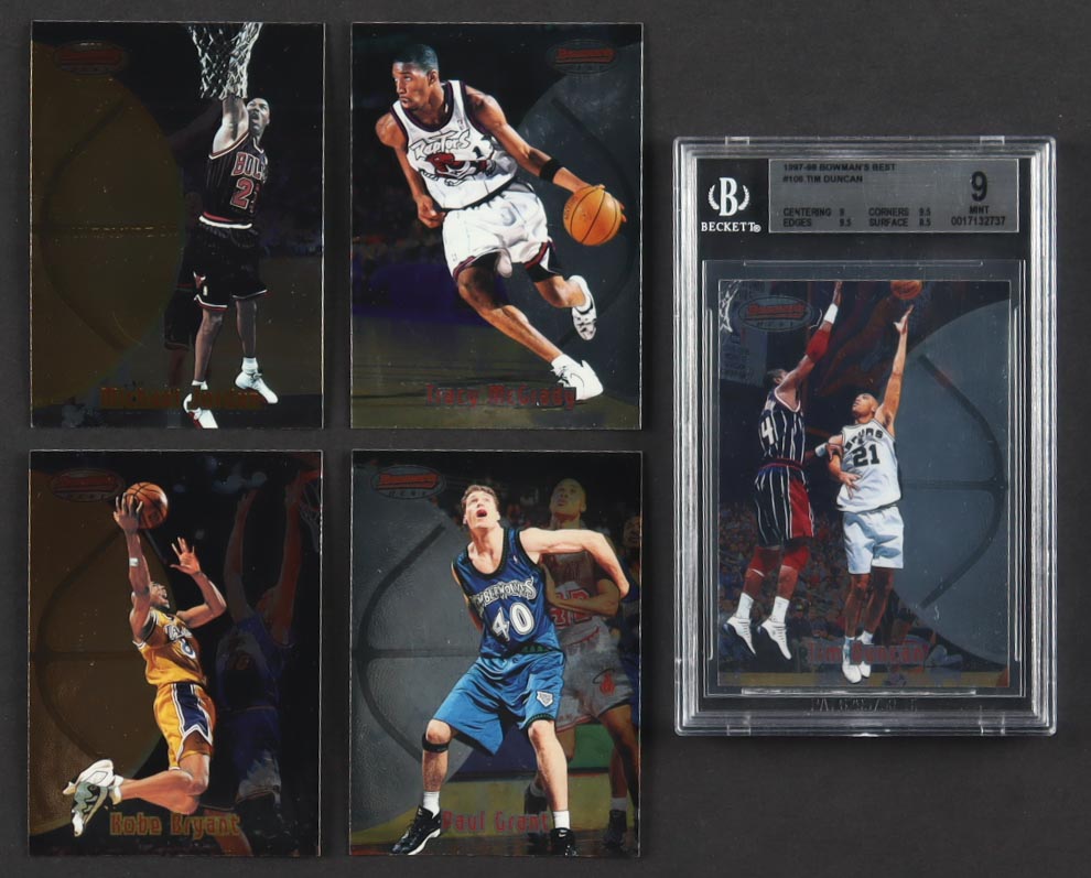 1997-98 Bowman's Best Basketball Complete Set of (125) Cards With Tracy McGrady #111 RC, Paul Grant #105 RC, Michael Jordan #60, Kobe Bryant #88, Tim Duncan #106 RC (BGS 9)