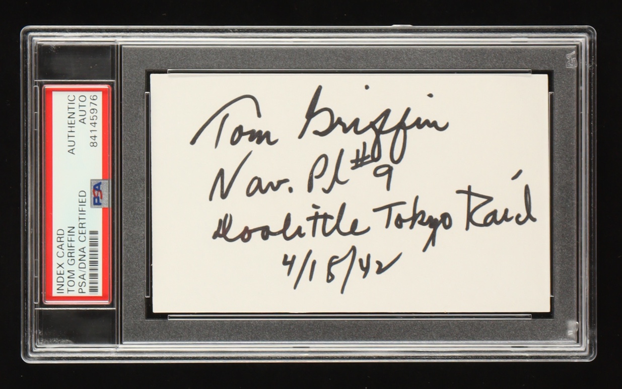 "**Tom Griffin – Hand-Signed 3x5 Index Card – Inscribed ""Doolittle Raiders"" – Encapsulated by PSA/DNA**