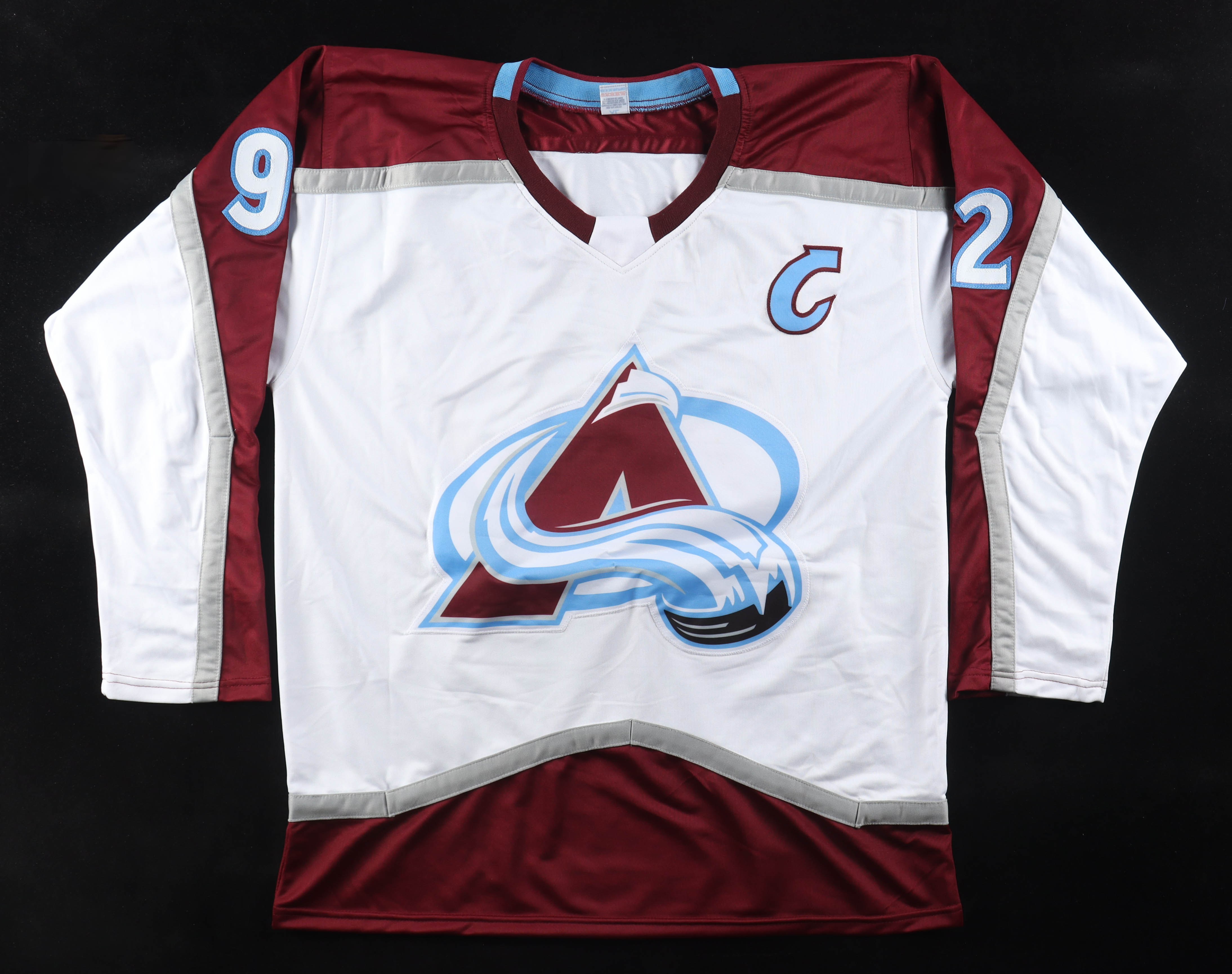 Custom jersey with everything sewn on, size XL. Hand-signed by Gabriel Landeskog.
