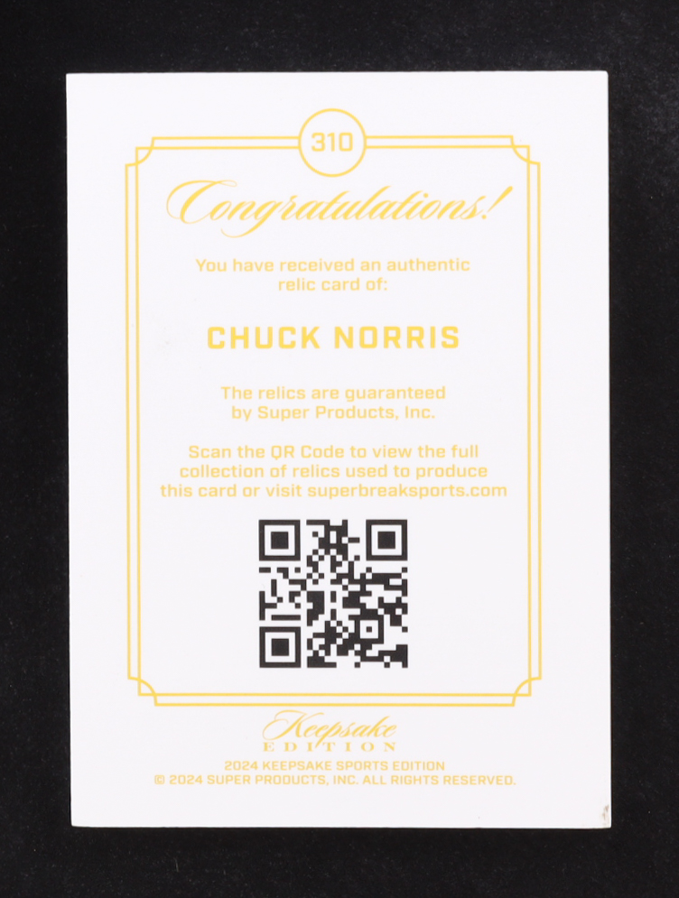 Chuck Norris 2024 Keepsake Sports Edition Gem Relic Authentic #310 95/99