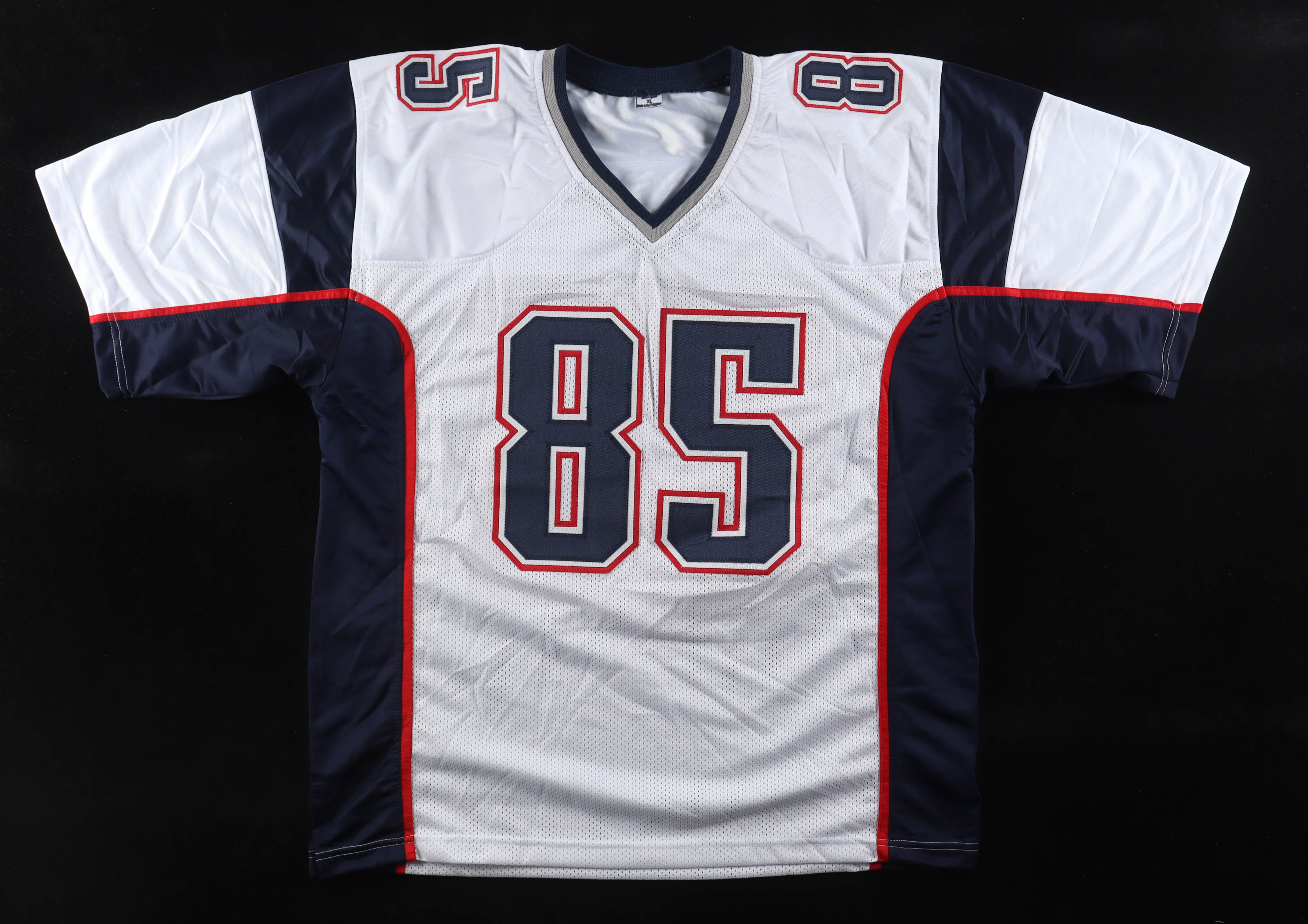 Custom jersey with everything sewn on, size XL. Hand-signed and inscribed by Jermaine Wiggins.