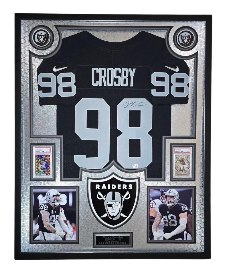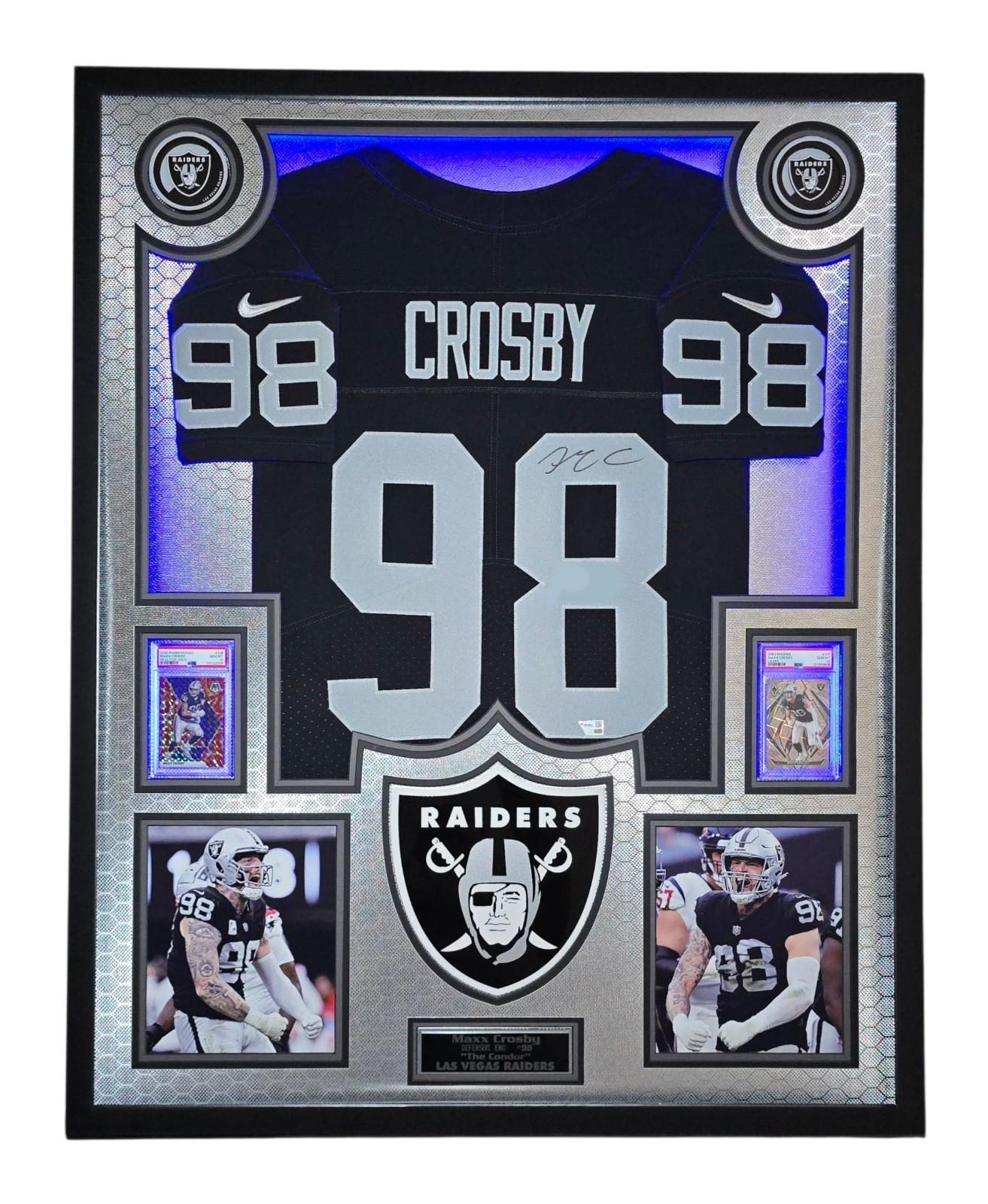 Maxx Crosby Signed Raiders Custom Framed LED Backlit Nike Elite Jersey Display & (2) PSA 10 Cards (Fanatics)