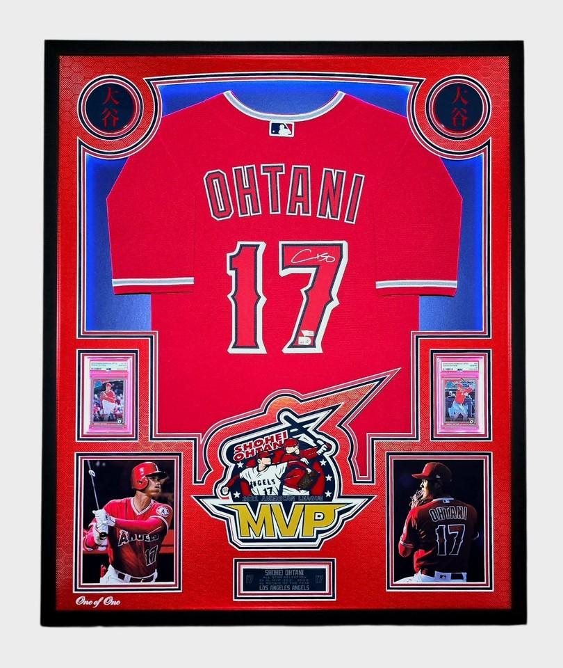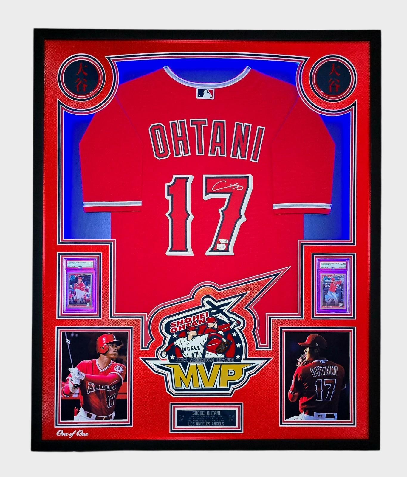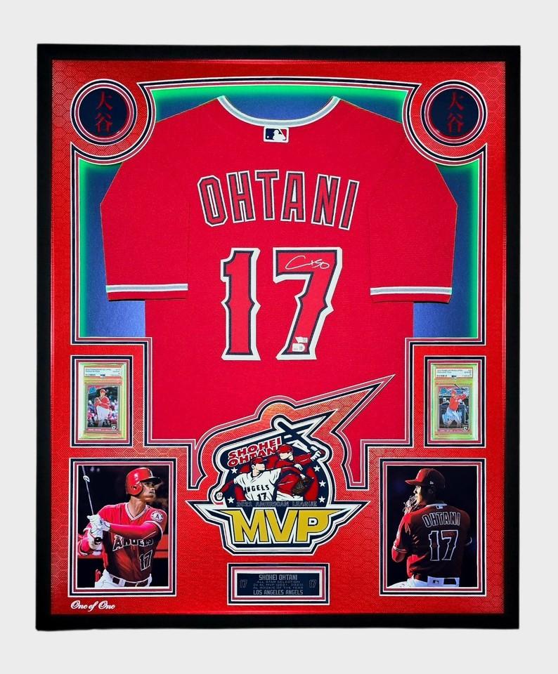 Shohei Ohtani Signed Angels Custom Framed LED Backlit Nike Jersey Display & (2) PSA 10 Graded Rookie Cards (Fanatics & MLB)