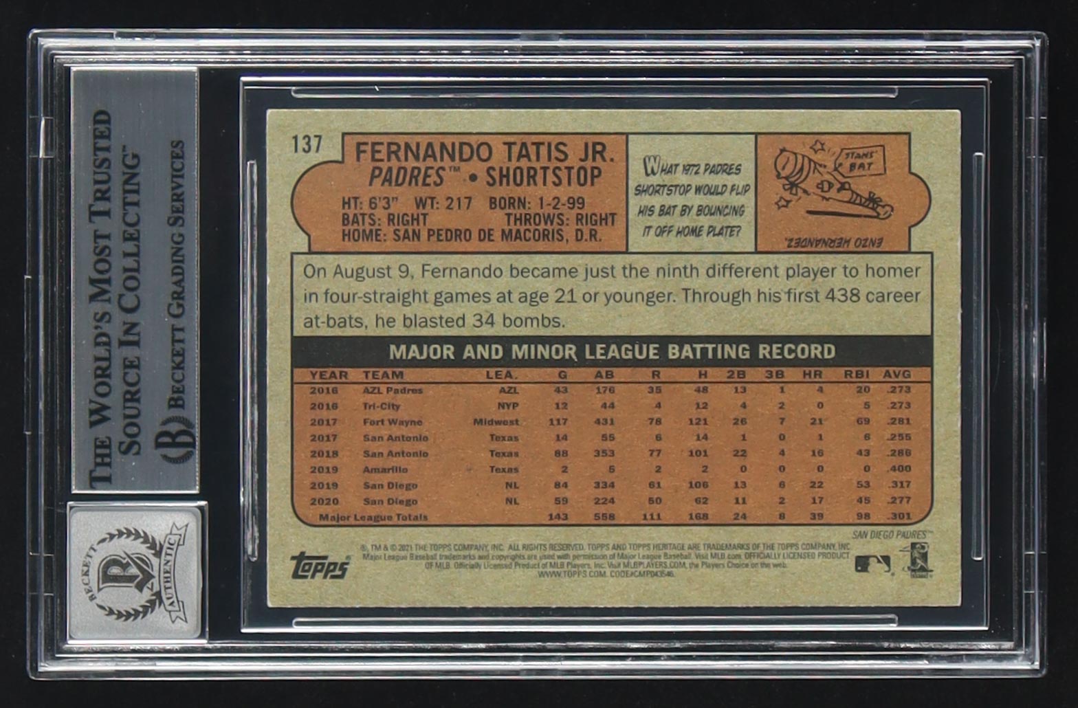 Fernando Tatis Jr. Signed 2021 Topps Heritage #137 (BGS | Autograph Grade 10)