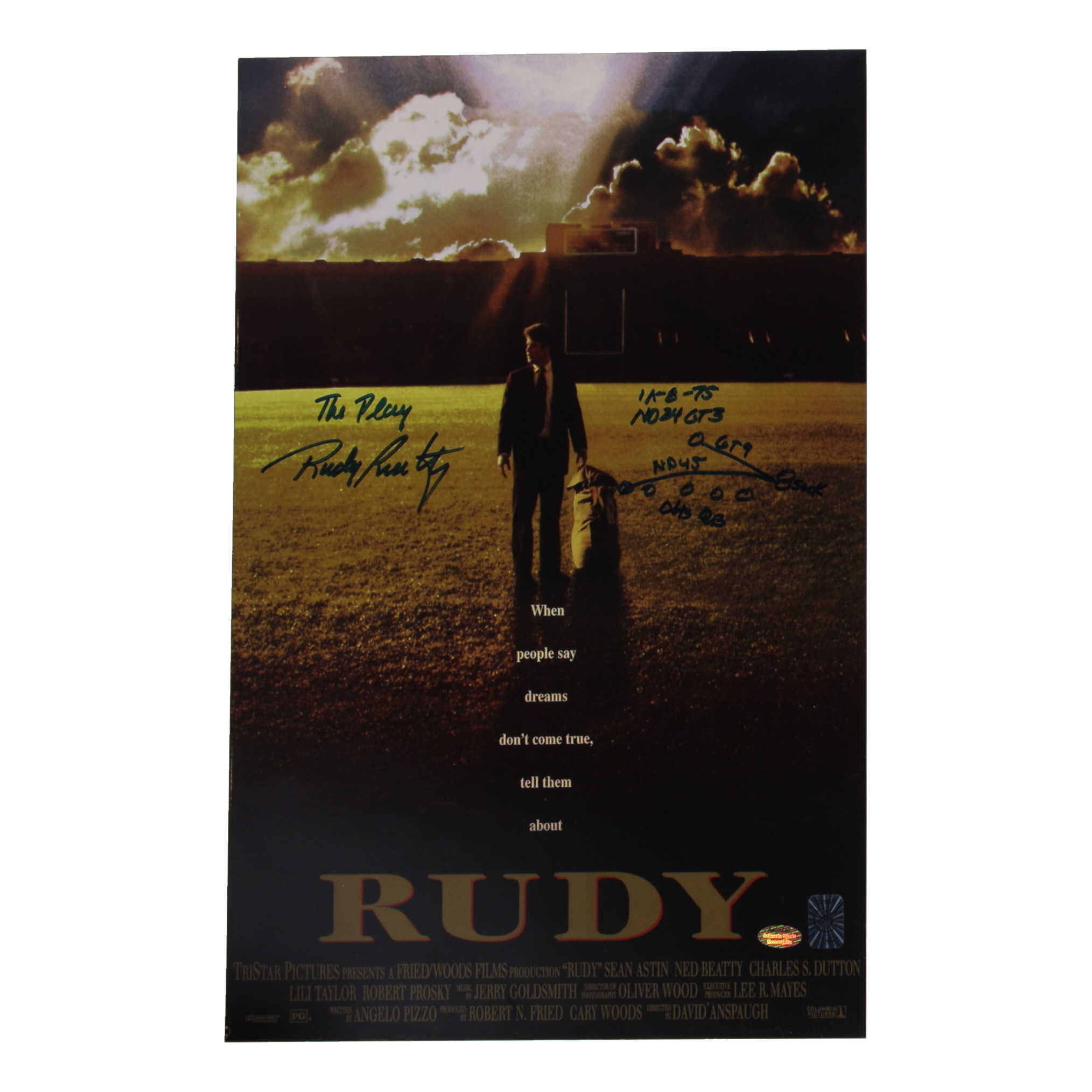 Rudy Ruettiger Signed "Rudy" 11x17 Movie Poster Photo Inscribed "The Play" with Hand-Drawn Sketch (Schwartz & Ruettiger)