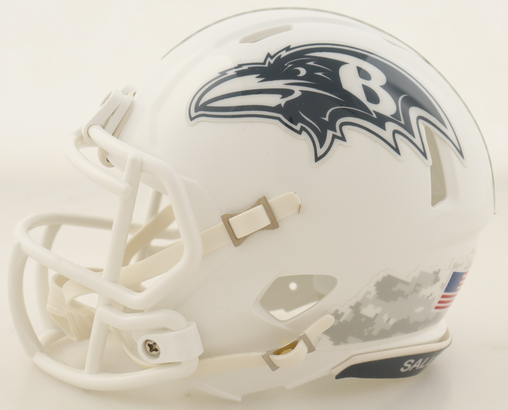 Riddell Baltimore Ravens Salute to Service Speed mini helmet. Hand-signed by Terrell Suggs.