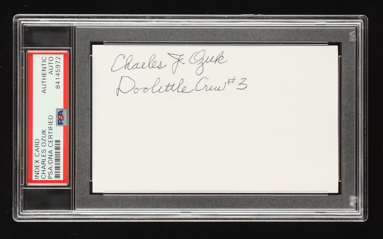 Charles Ozuk Signed Index Card (PSA) WWII Doolittle Raiders Crew #3