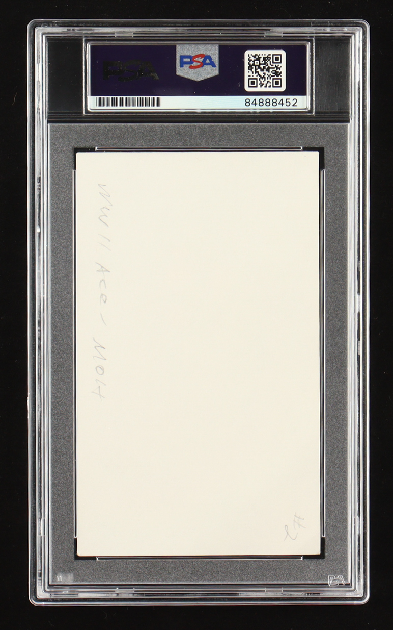 This signed index card, authenticated and encapsulated by PSA/DNA, represents an exceptional opportunity to own the autograph of a Medal of Honor recipient and ace whose name remains legendary in the annals of American air combat.