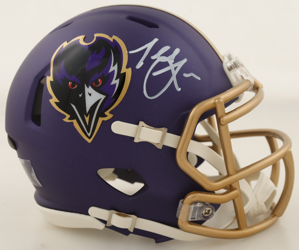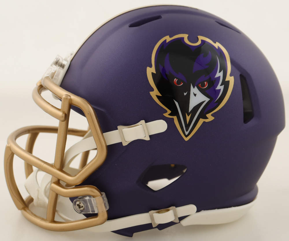 Riddell Baltimore Ravens speed mini helmet has been hand-signed by Terrell Suggs (Baltimore Ravens).
