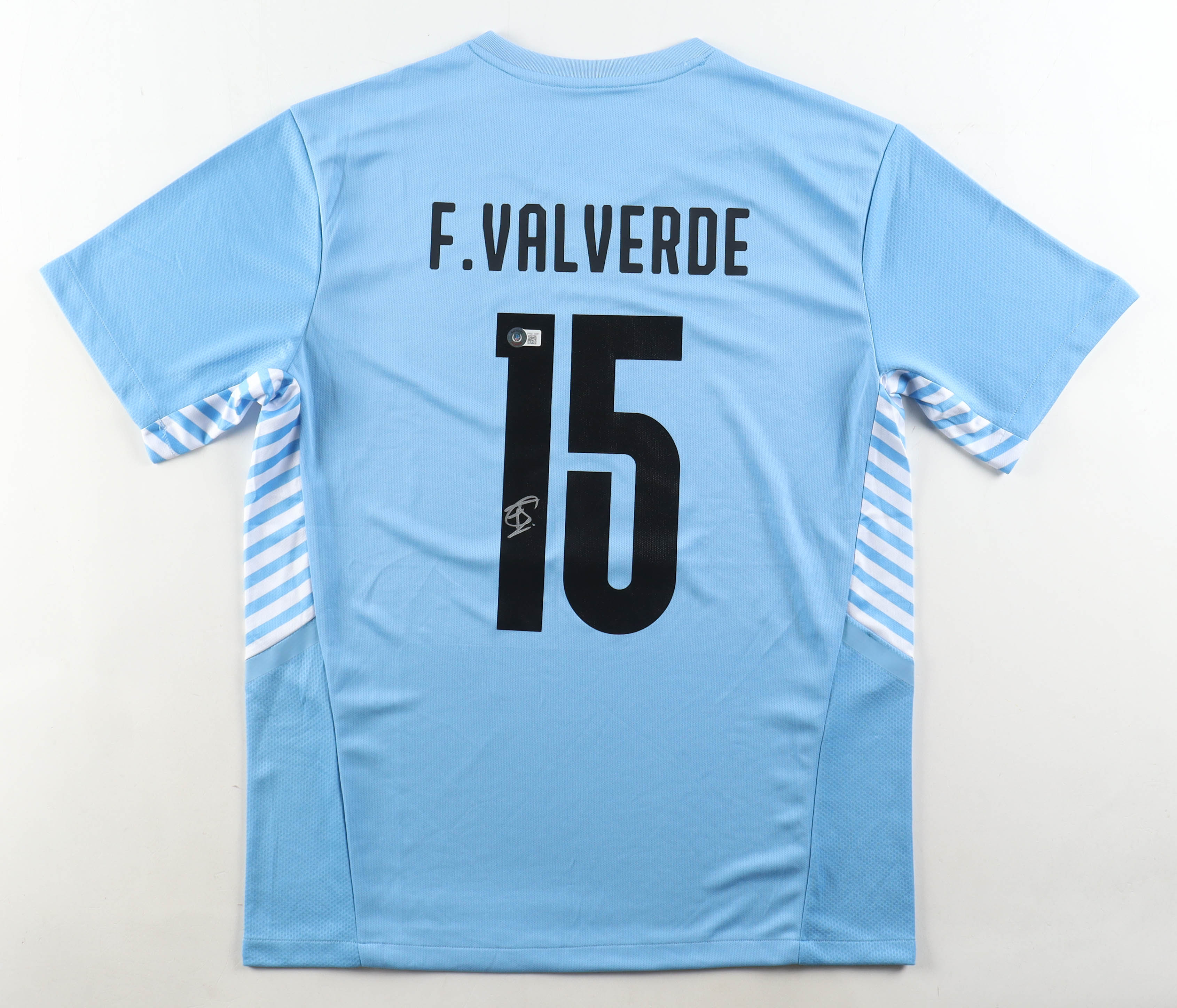 Custom jersey. Everything is pressed on, size XL. Hand-signed by Federico Valverde.