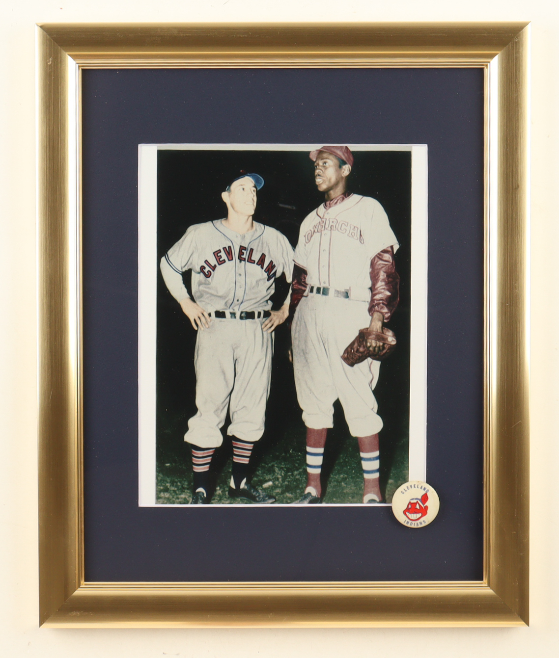 Satchel Paige & Bob Feller Custom Framed Photo Display with Vintage Indians Pin