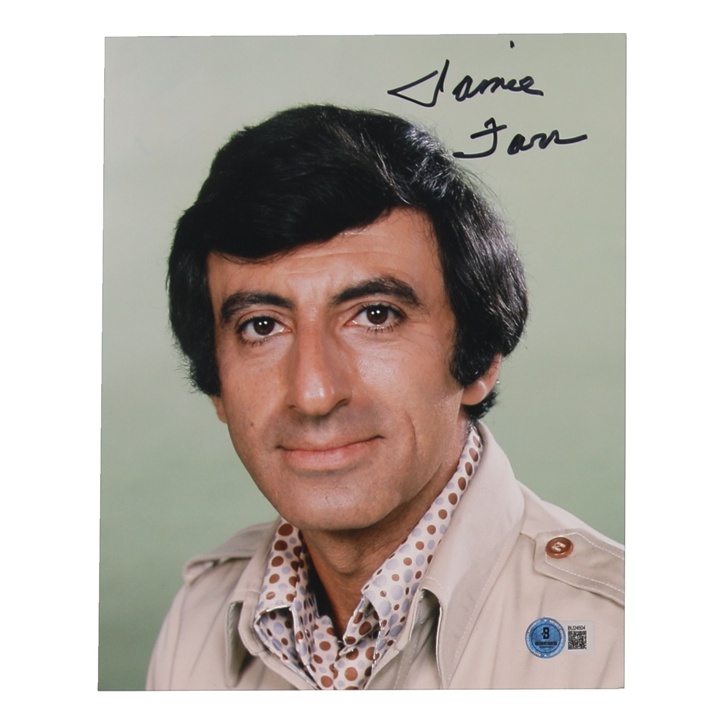 Photo measures 8" x 10" in size and has been hand-signed by Jamie Farr (Corporal Maxwell Q. Klinger).