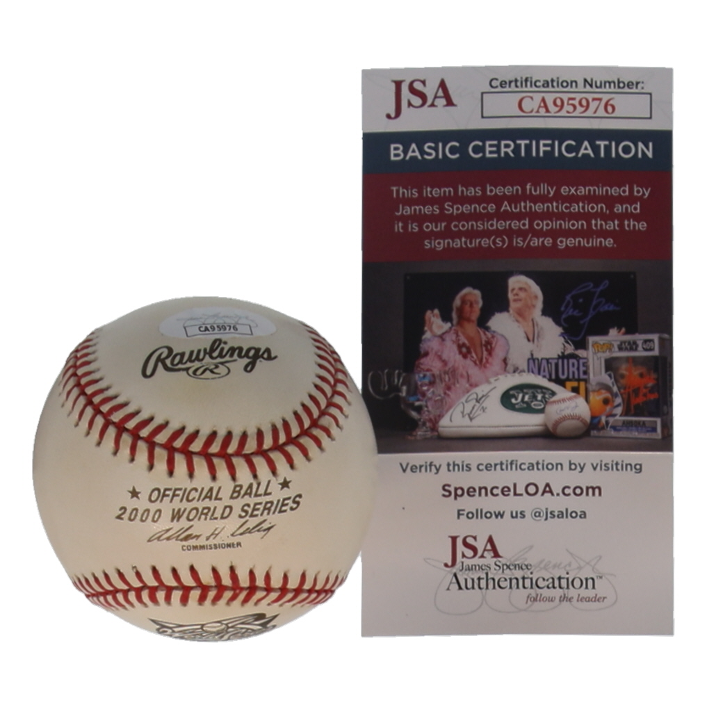 Rawlings Official 2000 World Series Baseball. Hand-signed by Jorge Posada (New York Yankees). Please note, the baseball is naturally toning and stained.