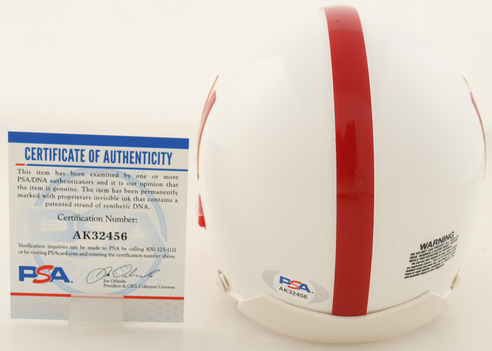 "Presented is a Nebraska Cornhuskers mini helmet, hand signed in permanent ink by legendary head coach Tom Osborne (b. 1937). The autograph has been authenticated by PSA/DNA and is accompanied by their Certificate of Authenticity, ensuring both verification and long-term preservation.