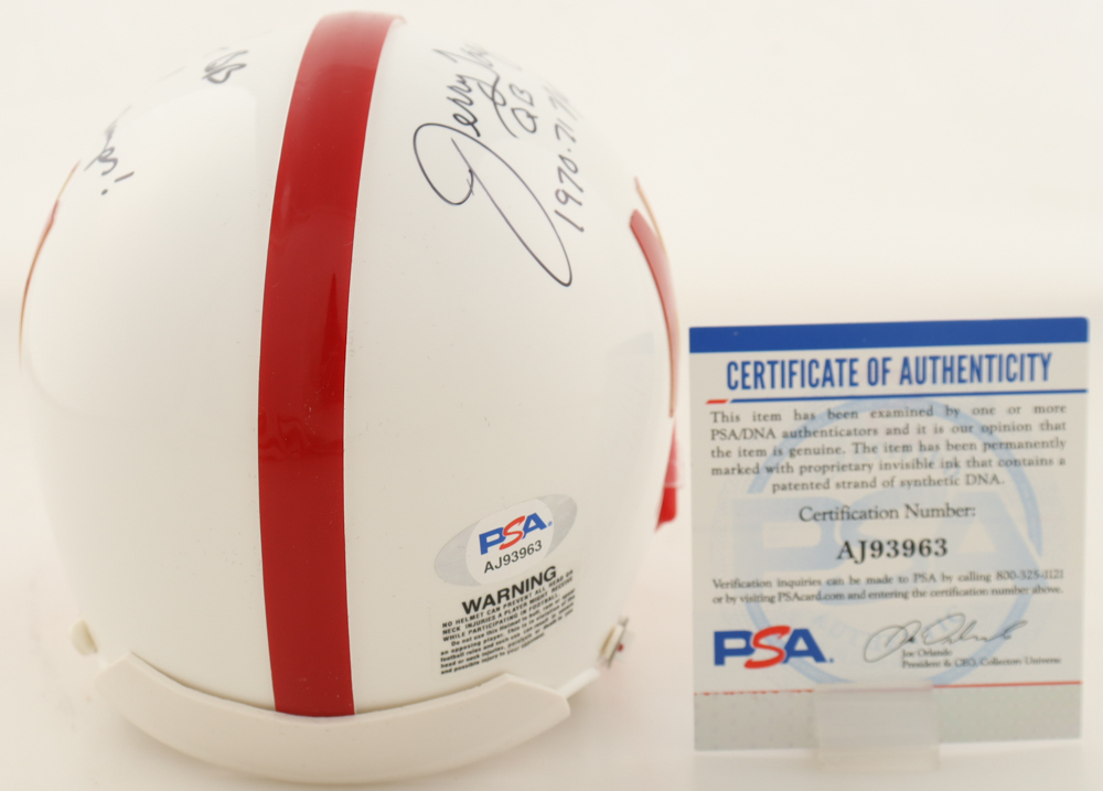 This dual-signed and inscribed mini helmet represents a rare pairing of the quarterbacks who brought Nebraska its first national championships in 1970–71 and its most dominant championships in 1994–95. Authenticated and certified by PSA/DNA, it stands as a unique collectible celebrating the legacy of Husker excellence across two dynasties.