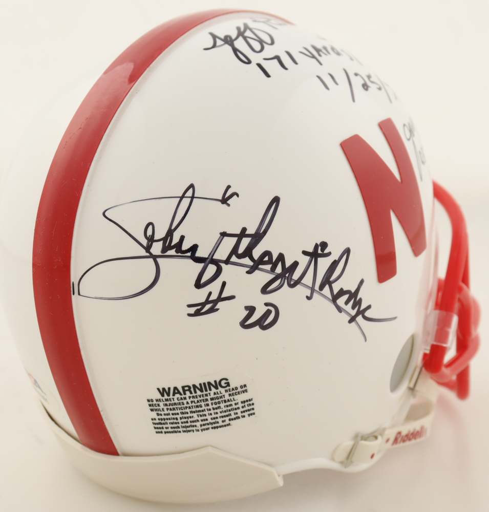 This signed mini helmet, authenticated and certified by PSA/DNA, brings together the autographs of three Nebraska legends whose performances in the 1971 Game of the Century defined a dynasty and etched their names into college football lore.