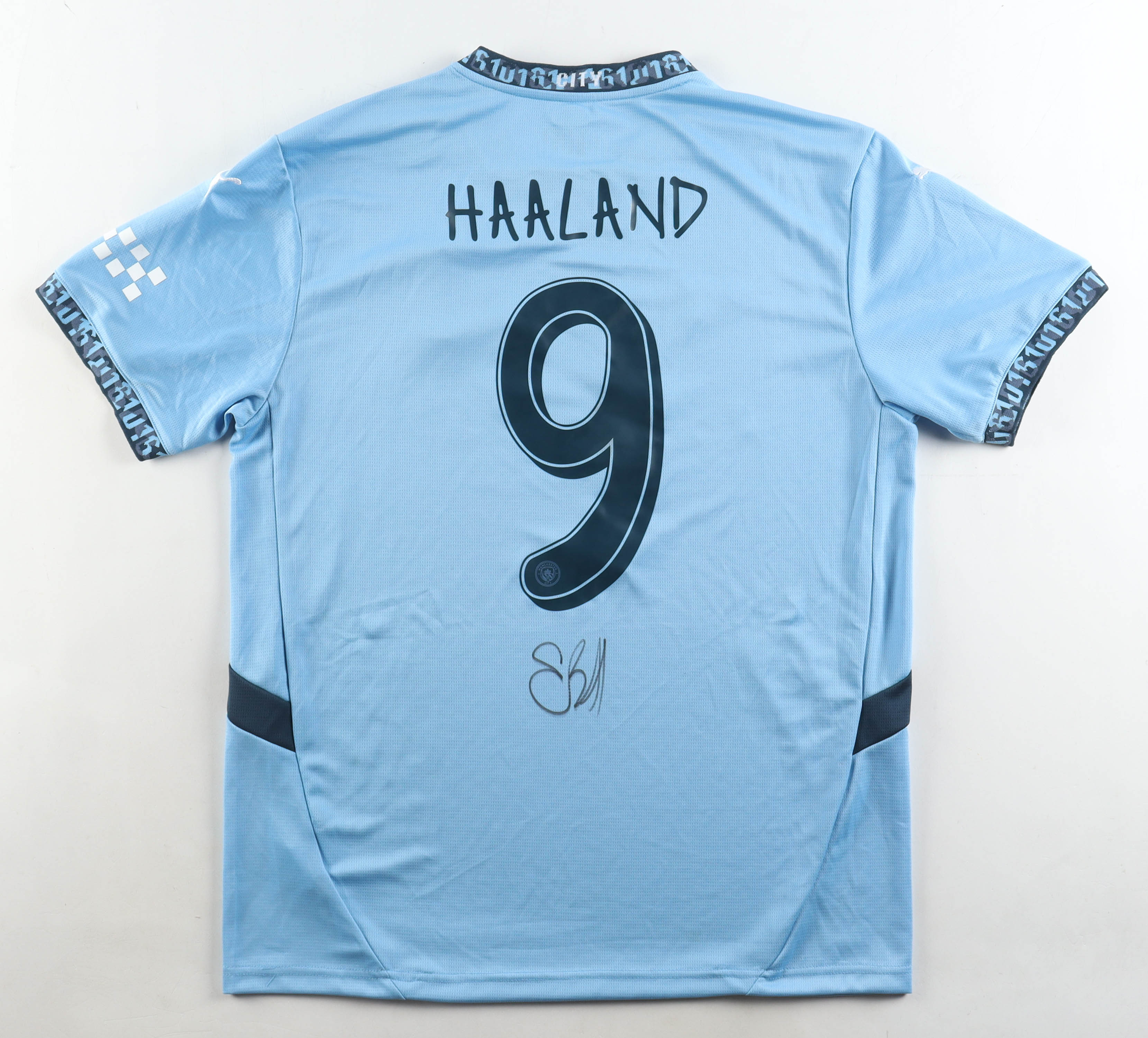 Puma jersey. Everything pressed on, size XL. Hand-signed by Erling Haaland (Manchester City F.C.).