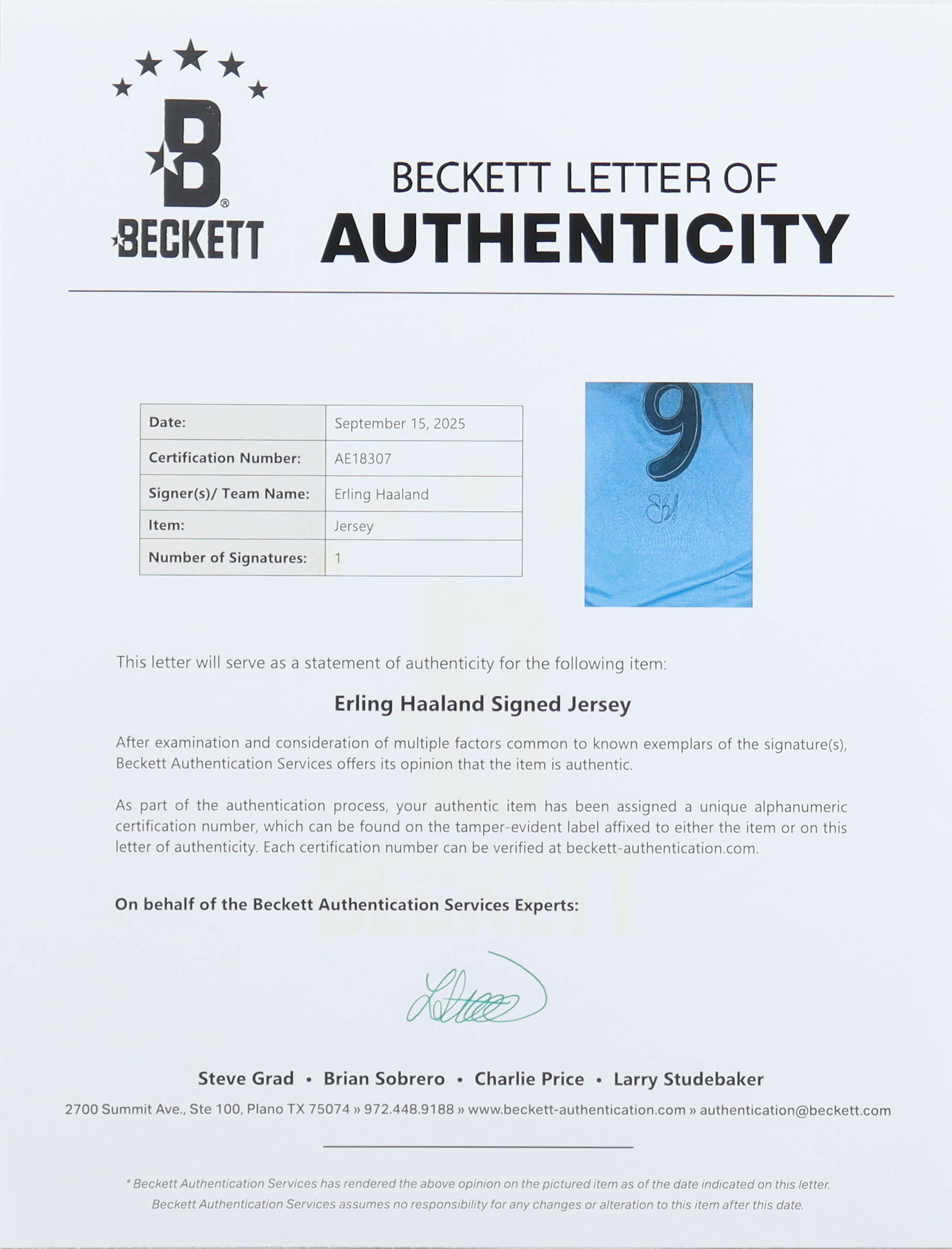 Erling Haaland Signed Puma Manchester City Authentic Jersey (Beckett)