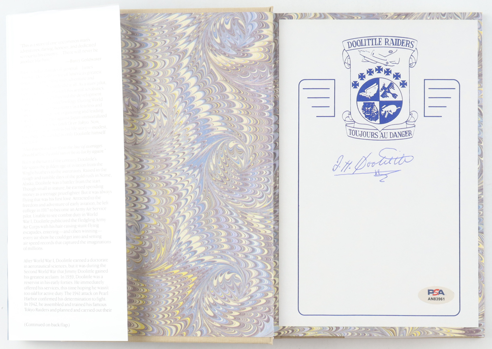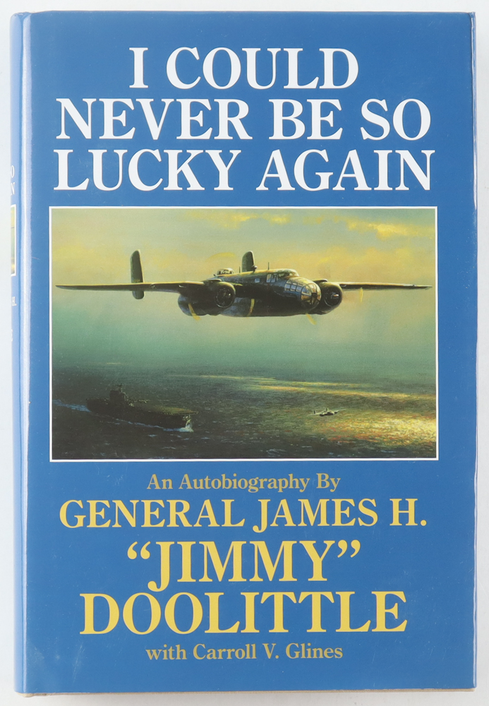 "I Could Never Be So Lucky Again" hardcover book has been hand-signed on the inside cover page by Jimmy Doolittle (D. 1993). Please note, there is some minor edge and corner wear as well as scuffing on the cover dust jacket.
