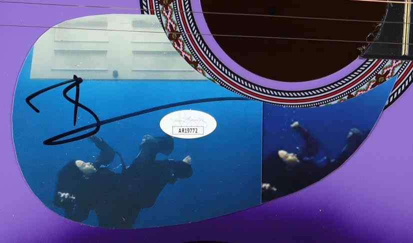 Acoustic Guitar measures approximately 38" in length and has been hand-signed by Billie Eilish on a CD cover that has been repurposed as a pick-guard.