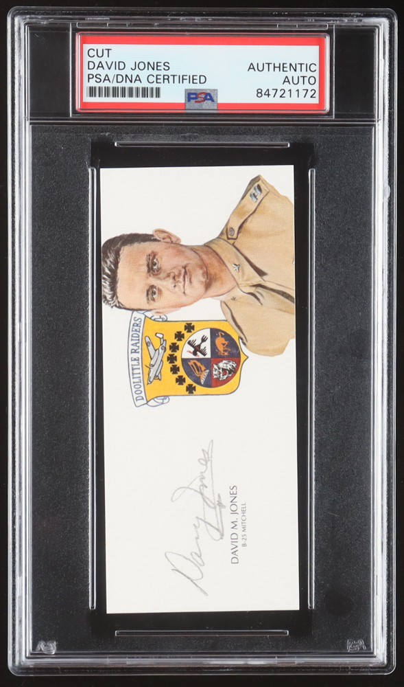 Cut measures approximately 2.5" x 5" in size has been hand-signed by David Jones (D. 2008).