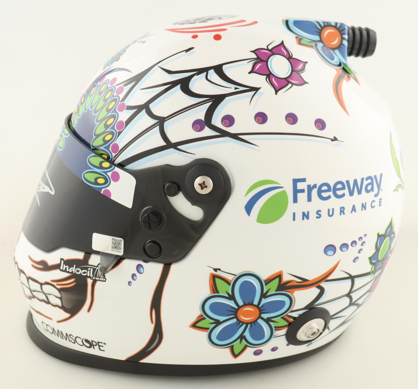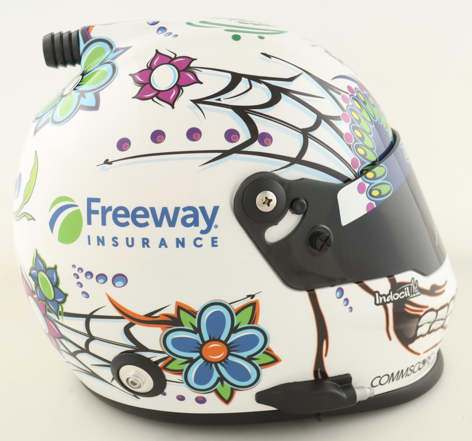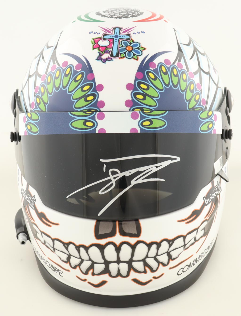 Full-size replica NASCAR helmet is hand-signed on the visor by Daniel Suarez.