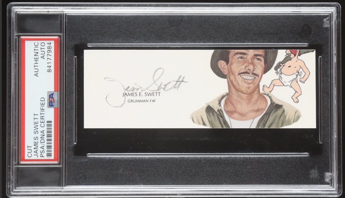 Cut measures approximately 2" x 5" in size has been hand-signed by James E. Swett (D. 2009).
