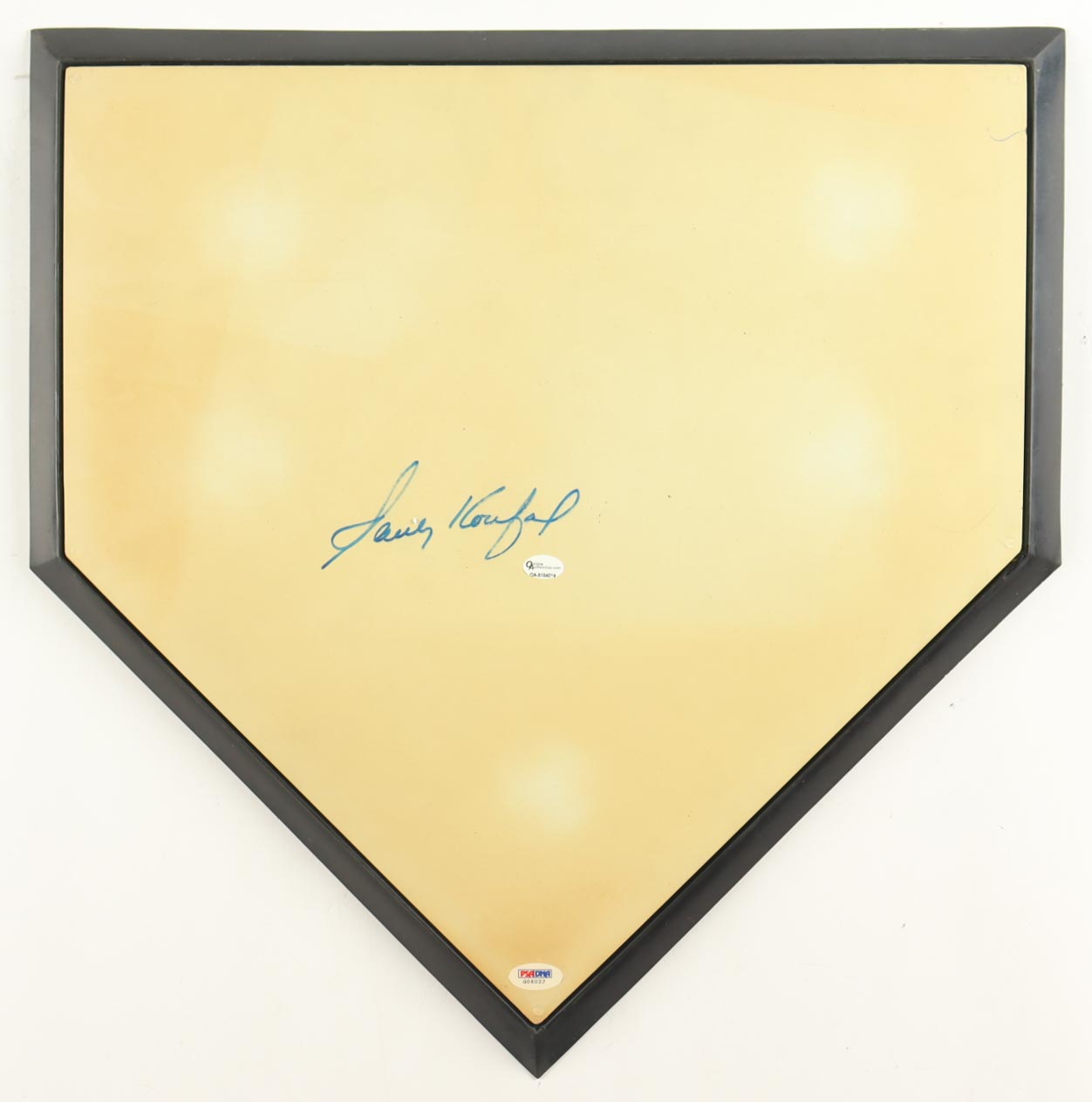 Home plate base measures 17" x 19" in size. Hand-signed by Sandy Koufax (Los Angeles Dodgers).