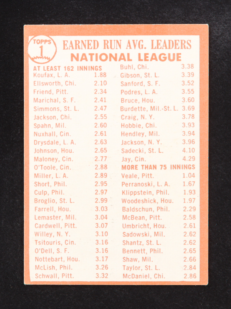 Sandy Koufax/Dick Ellsworth/Bob Friend 1963 Topps NL E.R.A. Leaders #1