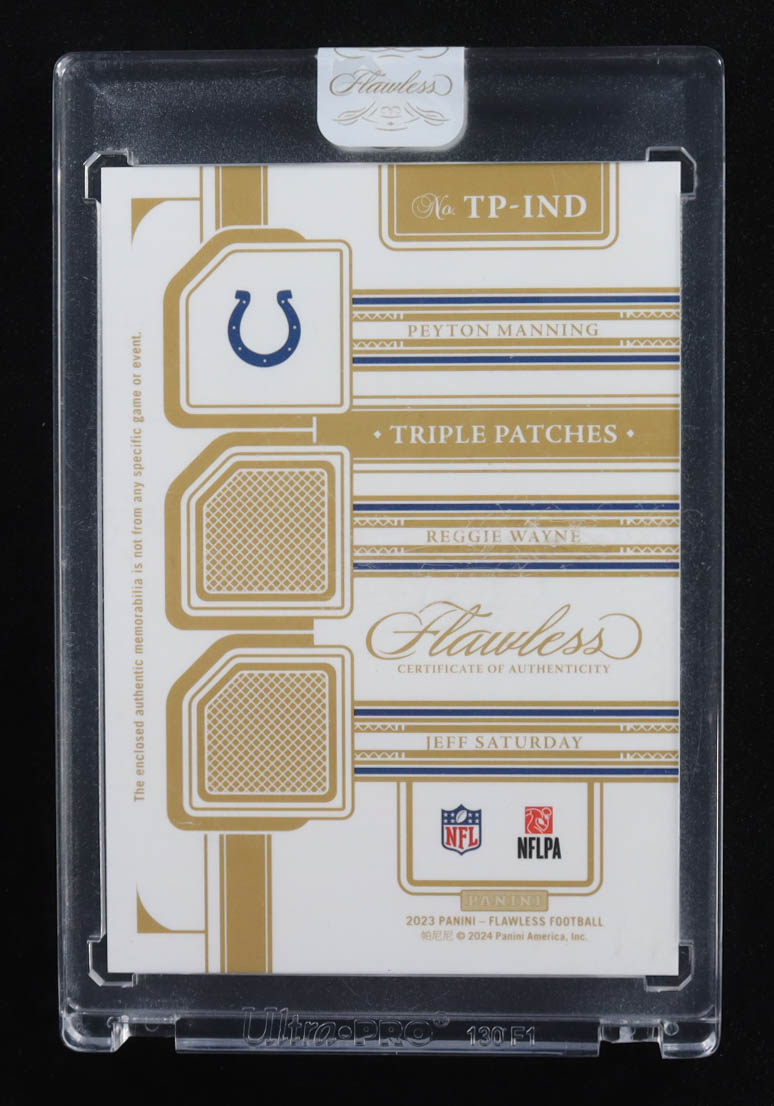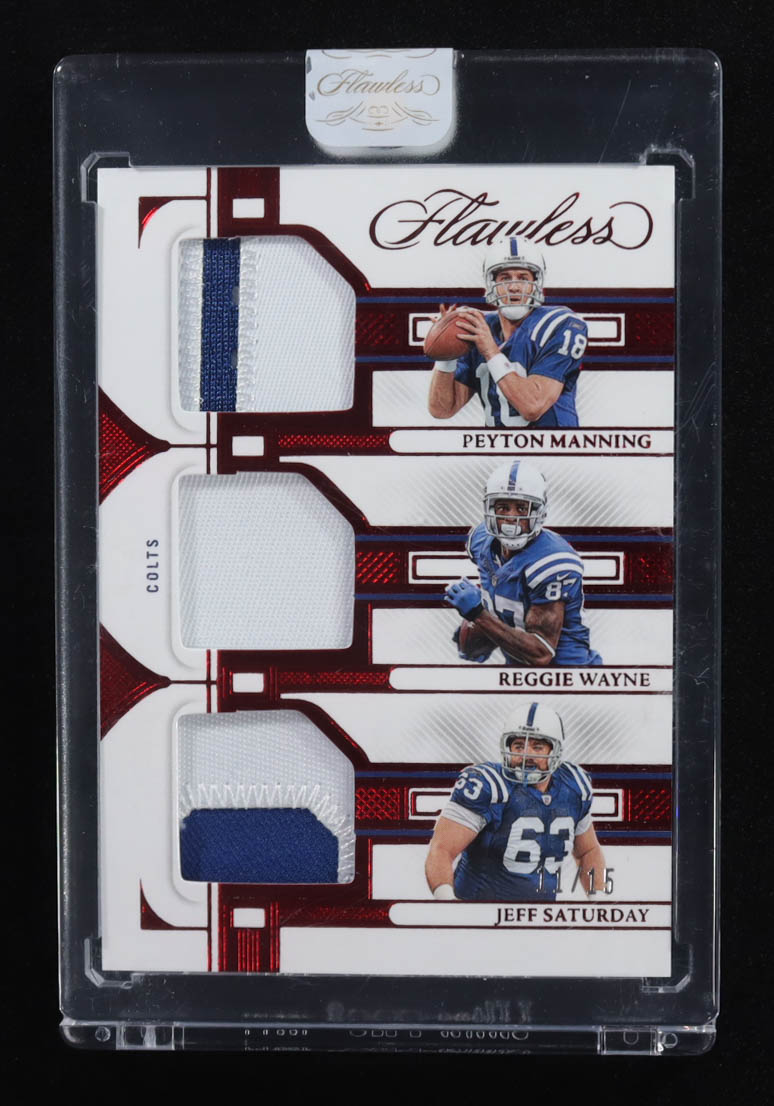 Peyton Manning / Jeff Saturday / Reggie Wayne 2023 Panini Flawless Triple Patches Ruby #5 #11/15