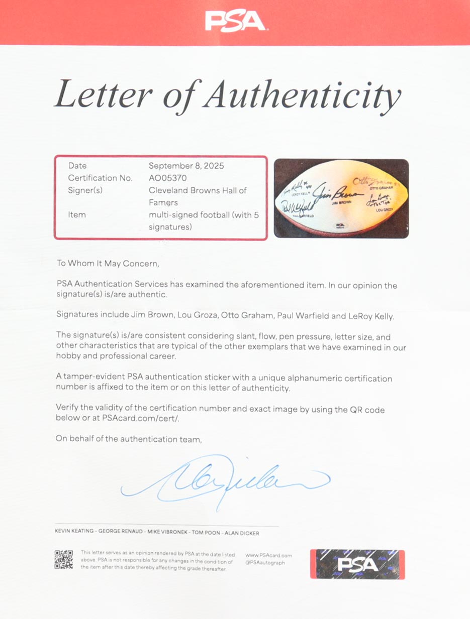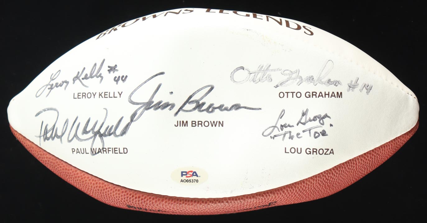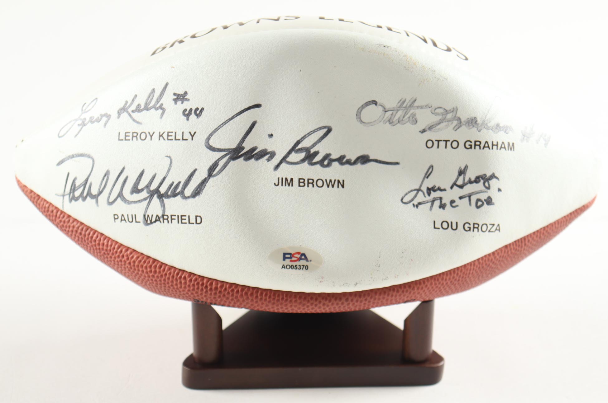 Cleveland Browns Hall of Famers | Browns Legends Logo NFL Football Signed by (5) with Jim Brown, Lou Groza (PSA)