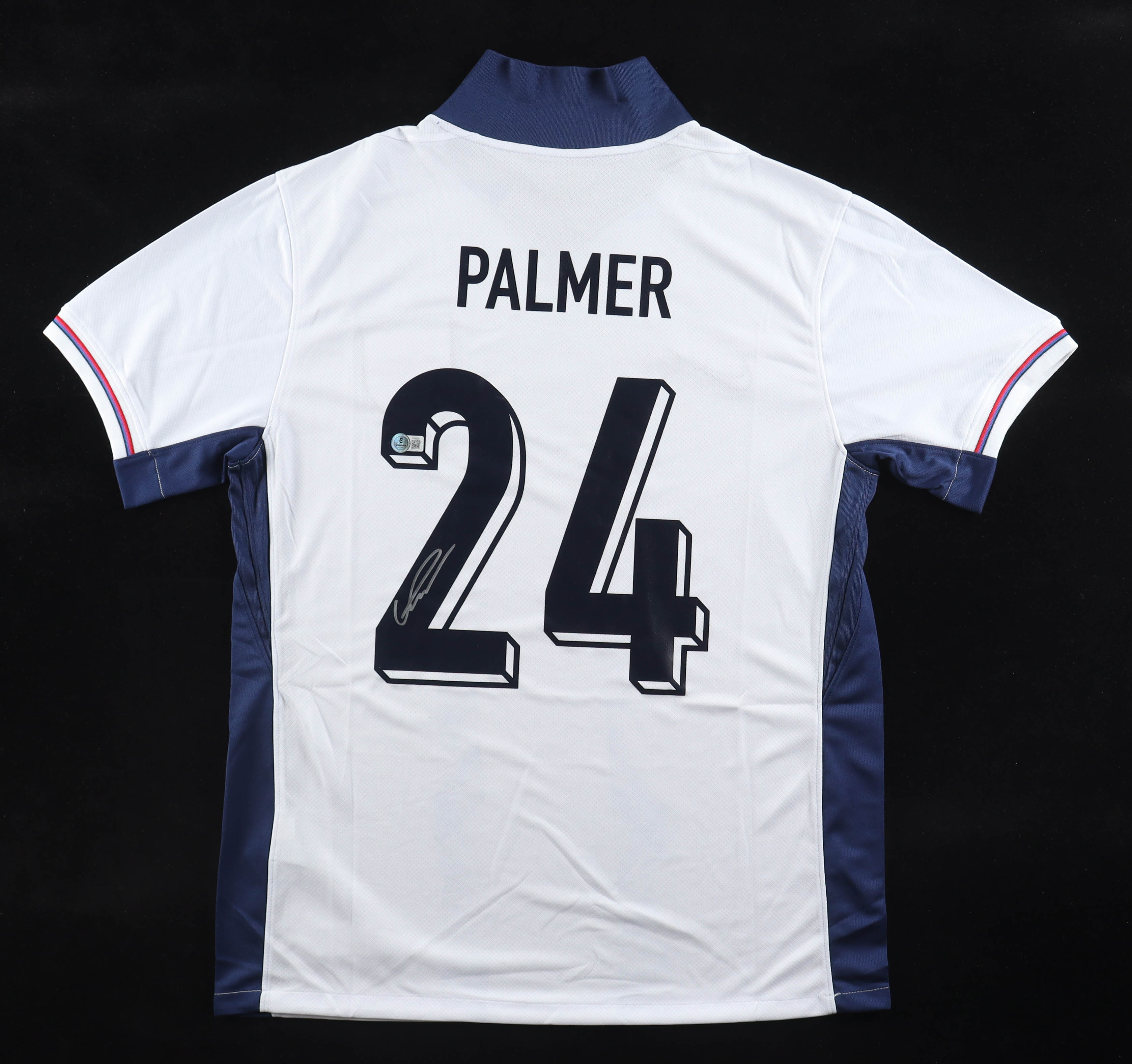 Nike jersey with everything pressed on, size L. Hand-signed by Cole Palmer (England National Football Team).