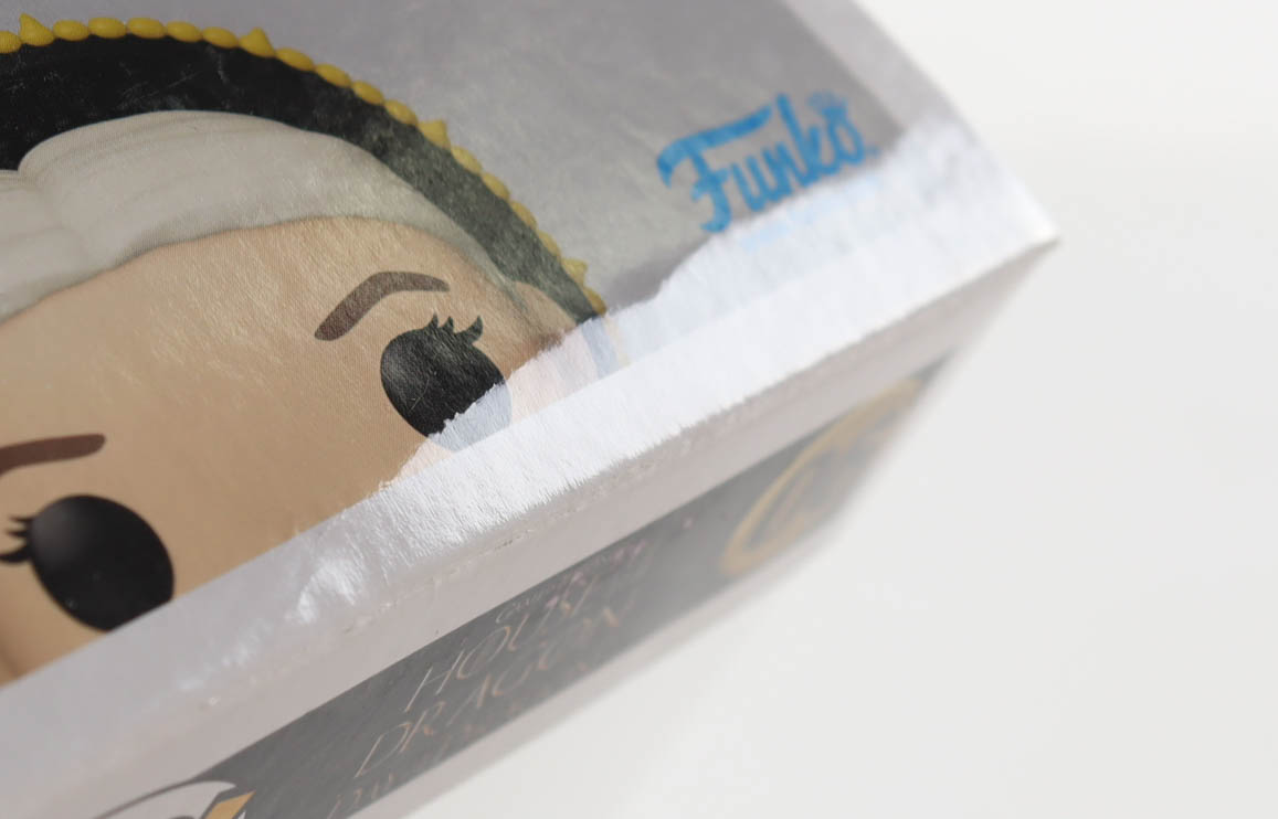 Vinyl figure measures approximately 4" tall and has been hand-signed on the packaging by Milly Alcock. Please note, the window has been swapped and there is damage to the packaging, see photos for more details.
