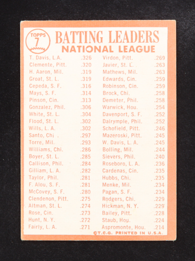 Hank Aaron/Bob Clemente/Tommy Davis/Dick Groat 1964 Topps NL Batting Leaders #7