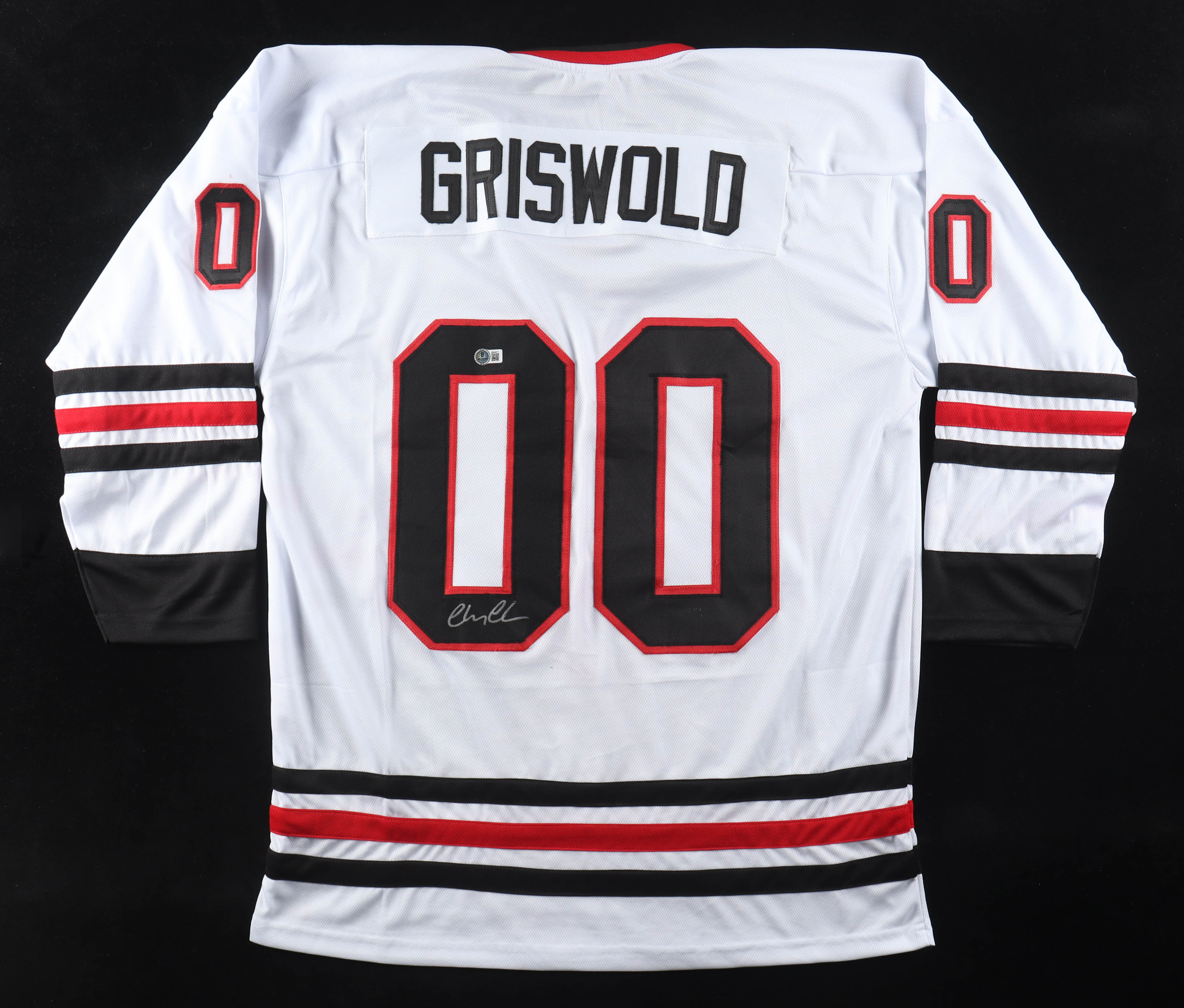 Custom jersey with everything sewn on, size XL. Hand-signed by Chevy Chase (Clark Griswold).