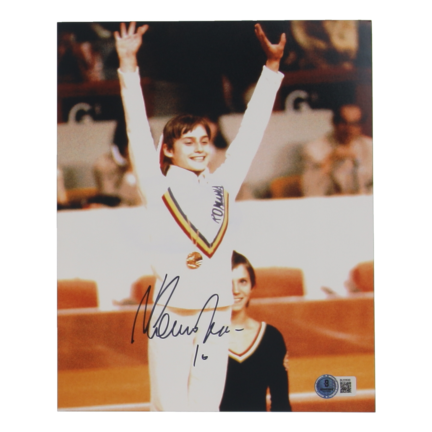 Photo measures 8" x 10" in size and is hand-signed by Nadia Comaneci.