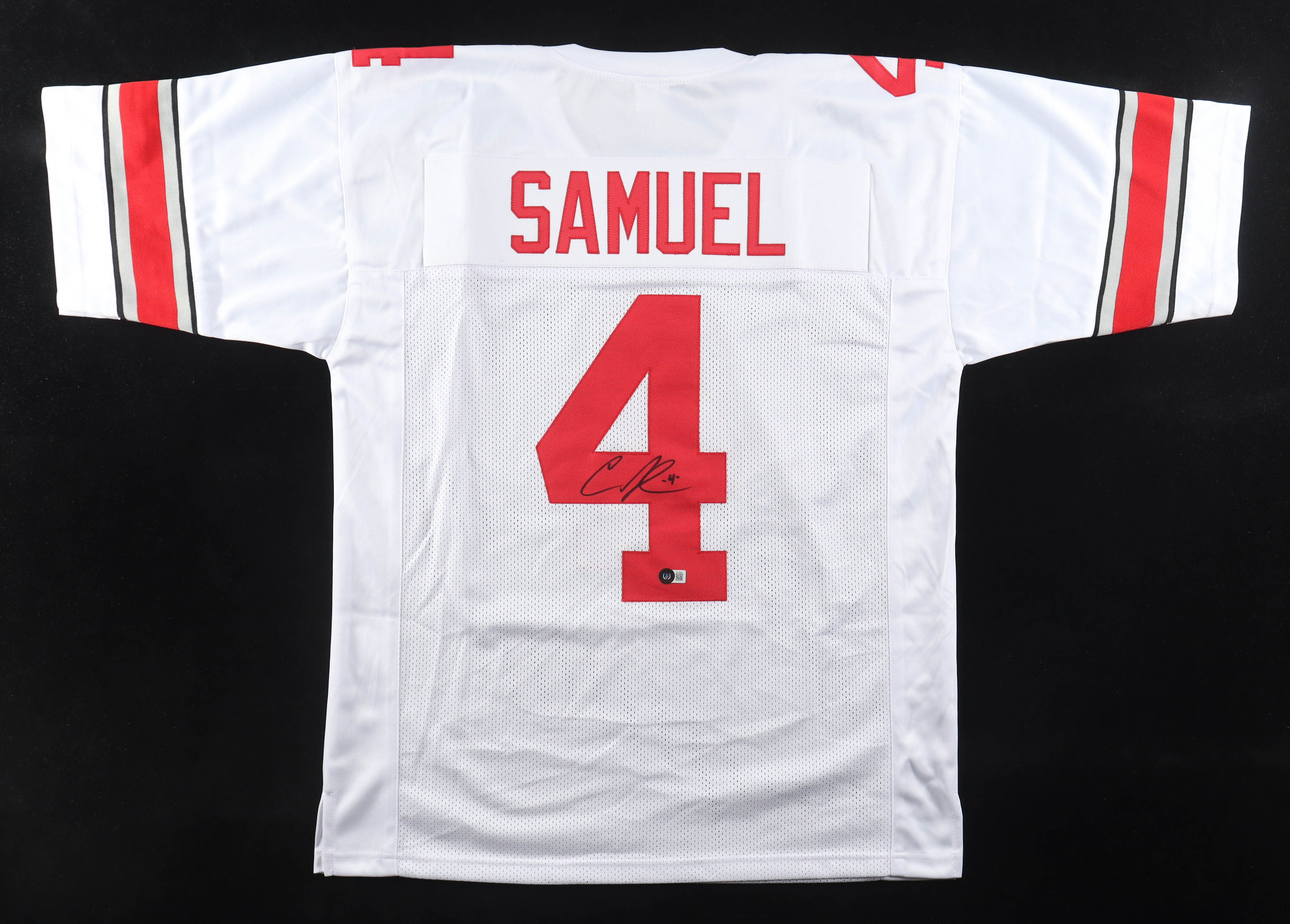 Custom jersey with everything sewn on, size XL. Hand-signed by Curtis Samuel.