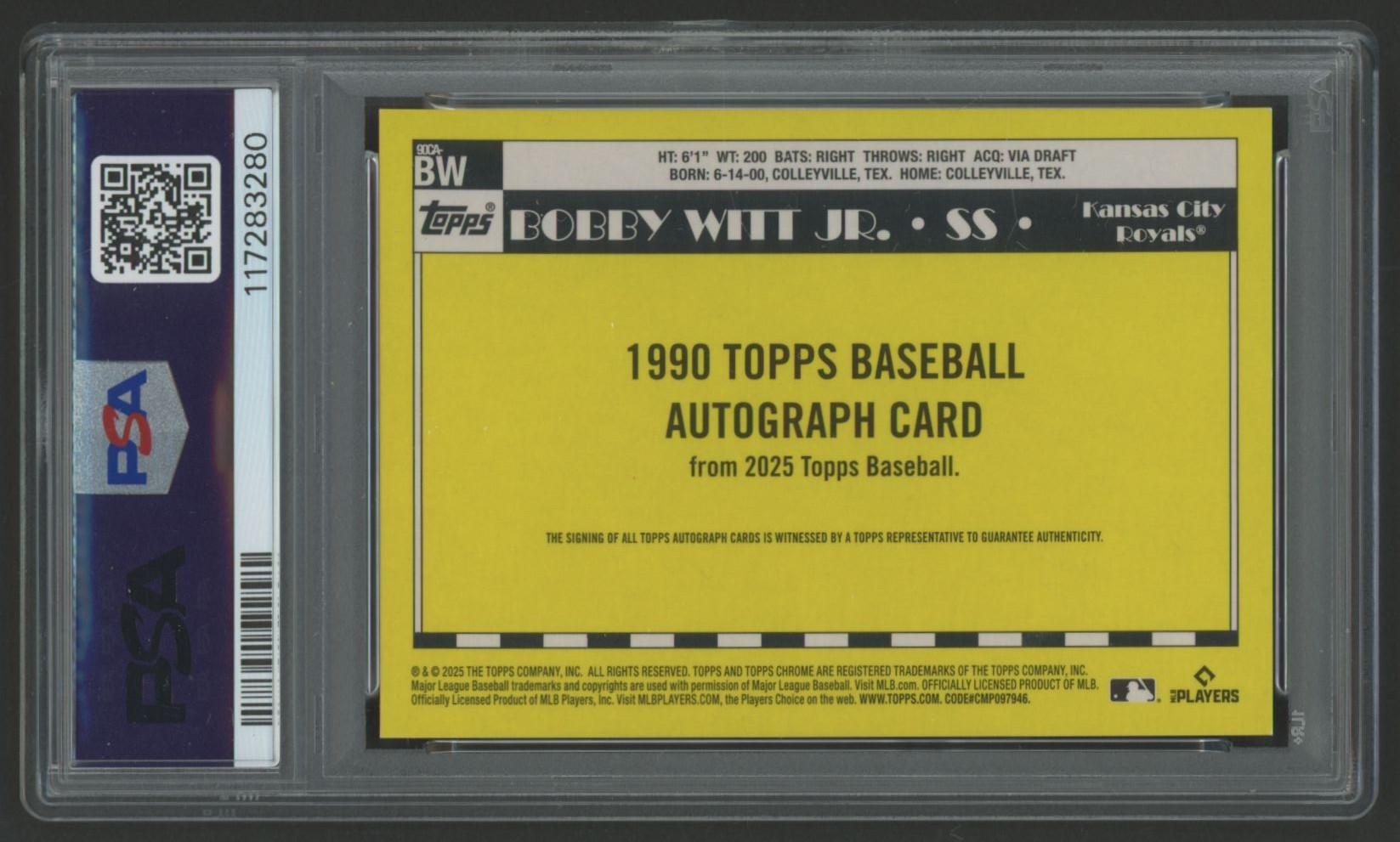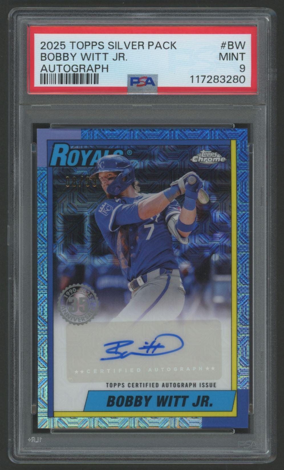 Bobby Witt Jr. 2025 Topps Chrome Silver Pack Autograph #90CABW #8/99 (PSA 9)